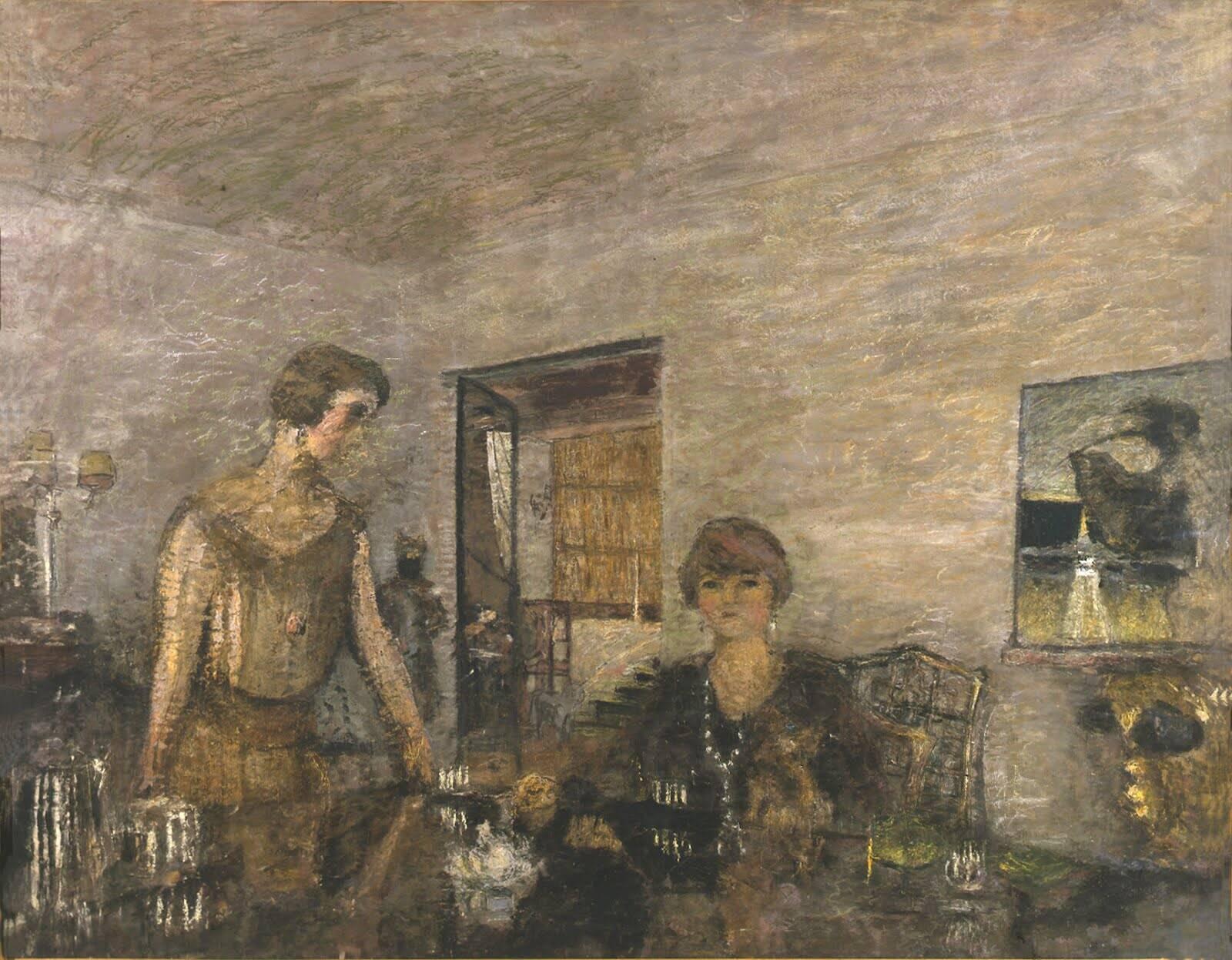 Si le père et la mère de Misia sont respectivement artiste et fille d’artiste, elle ne présentera d’aptitude à exercer son art de l’interprétation musicale que dans le cercle privée et ne sera liée à la vie artistique que par ses fréquentations. Ainsi son mariage avec Thadée Natanson, fondateur de la La revue blanche lui fera côtoyer des artistes tels que Vuillard, Valloton ou encore Toulouse-Lautrec. Tous sont amoureux d’elle, et Misia devient alors leur muse. On peut donc trouver tout au long de l’exposition de nombreux portraits de cette femme par Vuillard qui portait une fascination sans limites à Misia incarnant à la perfection la parisienne type des années folles (« Misia Sert et sa nièce Mimi Godebska. Les Tasses noires. » Vuillard). La vie de Misia suivant l’émancipation des mœurs caractéristique de l’époque, deux divorces interviennent avant sa rencontre avec José Maria Sert. Ce dernier lui fit découvrir le milieu d’avant garde et Serge Diaghilev, avec qui elle entretiendra des relations très étroites jusqu’à sa mort. Dès lors Misia s’implique vivement dans les Ballets Russes, distrayant les parisiens de 1917 encore sensiblement touchés par la « Grande Guerre ». En effet ces ballets représentent l’archétype du milieu artistique de l’époque car ils réunissent en une seule œuvre les compétences de l’ensemble des artistes phares des années folles : ainsi, les décors de Picasso, la musique d’Erik Satie et le génie touche à tout de Cocteau inspirent considérablement Léonide Massine pour son ballet «Parade», dont un extrait est visible dans l’exposition.