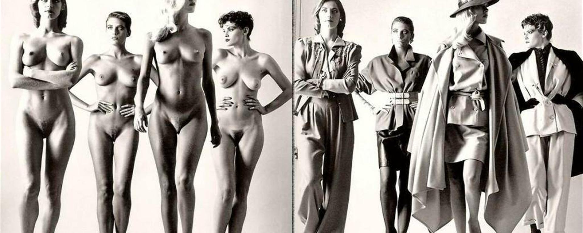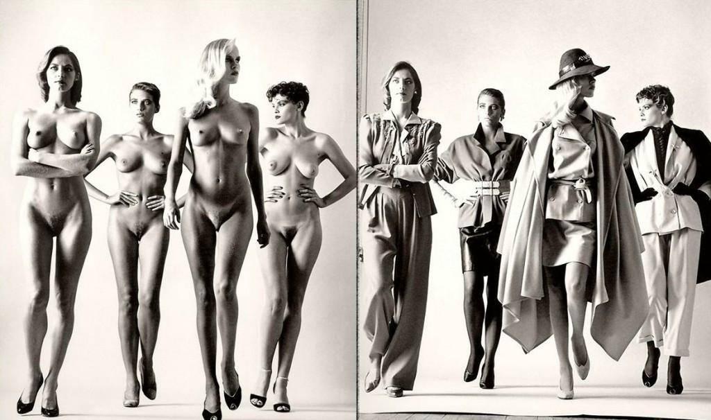 De même, quand ce n’est pas la nudité qui pourrait nous gêner, c’est la situation qui donne toute l’originalité et l’aspect provoquant de ces clichés. « Sie kommen » (photo de couverture) en est l’exemple frappant puisqu’il est constitué de deux gigantesques tirages : l’un avec quatre femmes habillées arrivant de façon déterminée, l’autre la réplique de cette scène à la seule différence que ces femmes sont entièrement nues. Cependant, si l’objet de prédilection de Newton, à savoir le côté sexuel, peut être traité avec goût, au contraire le photographe rejette cette manière de voir les choses en pensant « qu’il y a deux obscénités en photographie : l’art et le bon goût », ainsi l’une des qualités de Newton réside dans le fait qu’il peut à la fois allier le mauvais goût dans son cliché mais que celui ci ne sera pas pour autant altérer dans le rendu du luxe et du chic propre à la photographie de mode de magazines tels que Vogue, Harper Bazaar, etc..