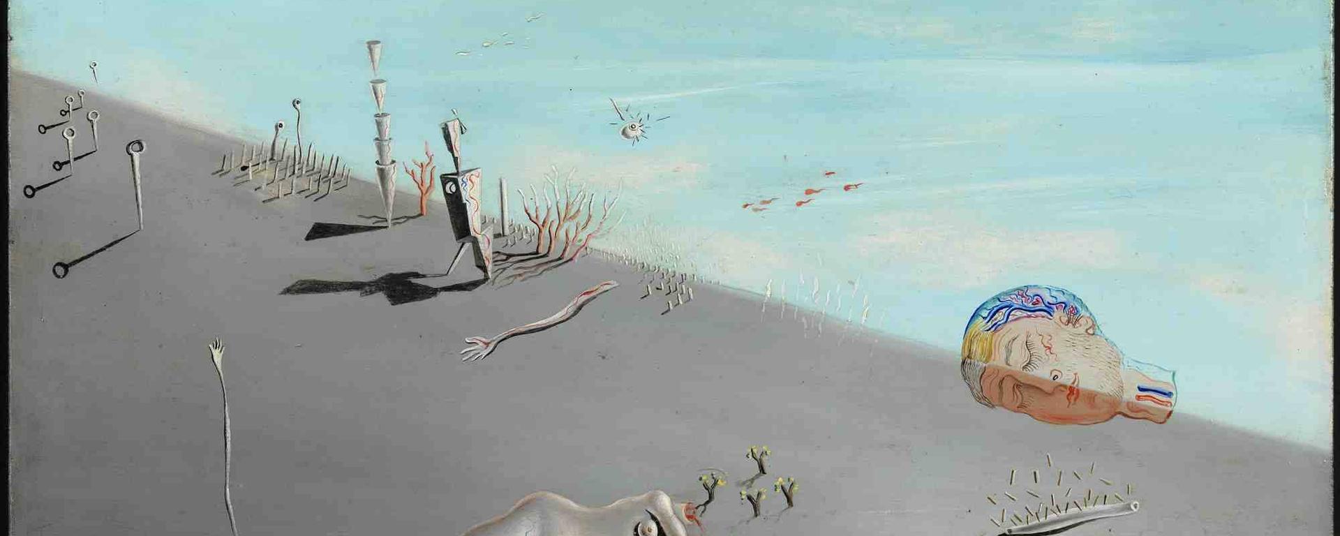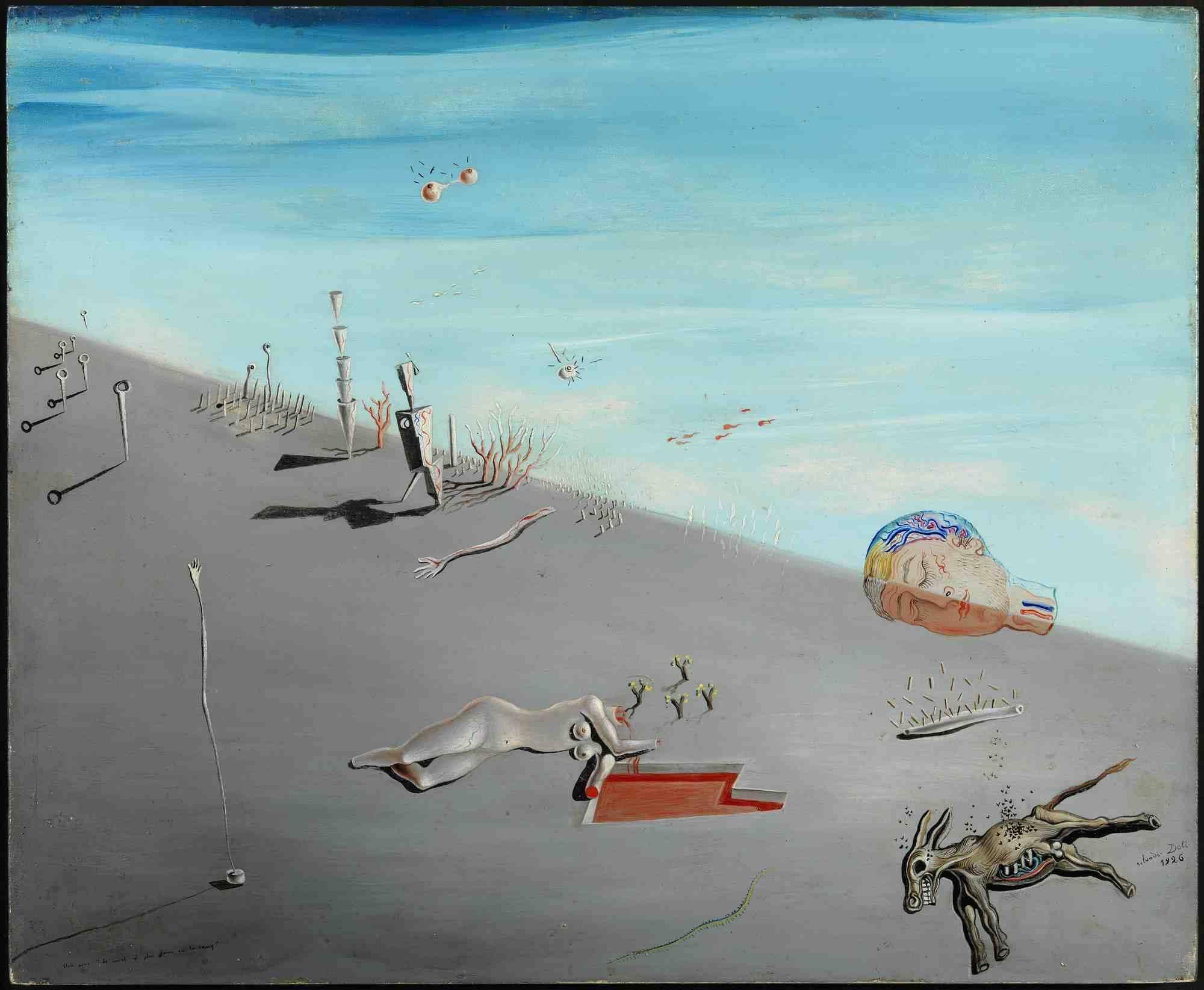 Soulignons également l’impact de la psychanalyse et des ouvrages de Freud sur le travail de Dali. La majorité de ses œuvres résulte en effet de la technique qu’il a élaboré : la paranoïa-critique. Ce n’est donc pas un hasard si dans la majorité des tableaux, on peut voir des objets à répétition: c’est la matérialisation et la mise à jour de ses obsessions. Grâce à cette méthode de la paranoïa-critique, l’artiste promeut ainsi au public son délire pour éviter d’en devenir une victime. Son soi, son mental, son mal-être est donc aussi une source d’inspiration. Elle est d’ailleurs à l’origine de toute son œuvre. L’un des exemples flagrant de cette matérialisation des délires de Dali est présent dans Le Jeu lugubre puisque, renvoyant aux angoisses sexuelles du peintre, des organes féminins sont présents, avec au centre le visage de l’artiste dont la bouche est représentée par l’une de ses phobies, le criquet.