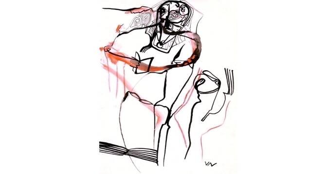 Dans Le vivier des noms, la scène est couverte de dessins de personnages, en rouge et noir, que Novarina a lui-même dessiné pour leur donner vie. Cette représentation artistique et imaginaire renforce d’autant plus le contraste avec la représentation réelle des personnages par les acteurs. Les comédiens sont sujet du dessin. Pour résumer, il s’agit finalement d’assister à la création permanente de la vie à partir de la fiction. Constamment, des personnages différents prennent vie devant nous, appelés, convoqués par l’Historienne, font l’objet d’une dizaine de réplique, puis disparaissent comme ils sont apparus.