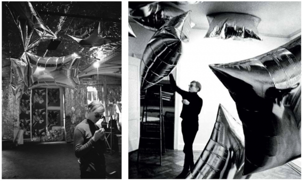 Dans le cadre de notre premier Focus, j’aurais pu choisir de vous parler de la série Shadows actuellement visible à l’occasion de l’exposition “Warhol Unlimited” au Musée d’Art Moderne. Ce dernier présente pour la première fois en Europe l’oeuvre dans son intégralité mais il est plus enrichissant de s’intéresser à une réalisation moins connue de la star des pop : les Silverclouds, ou coussins argentés.