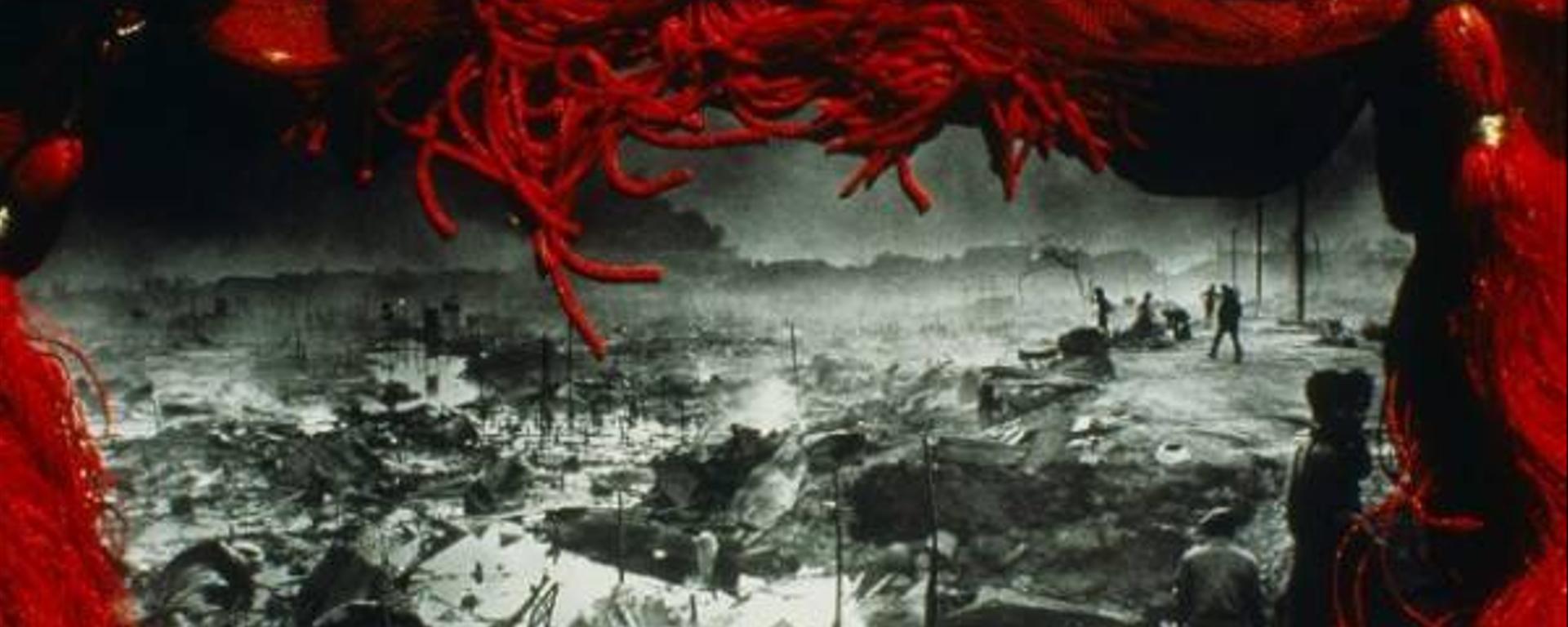 Comme si faire toucher les matières, papier inerte de la photo et chaleur diffuse d’un pétale de rose, pouvait créer un passage, une transmission du vivant à ce qui n’est plus. De même pour la couleur, ce rouge sang qu’on retrouve partout dans ses décors, ces doubles mises en scène du cadre fait autour de la photo pour être à son tour photographié et encadré à nouveau. Un rouge pétant, comme celui qui orne les lèvres et les ongles de l’artiste. On l’imagine bien ce visage, noir de suie, blanc de trouille, caché derrière la boîte du Nikon fétiche, celui du frère justement, en train de regarder des scènes qui resteront gravées dans bien des mémoires. La photographe semble s’appliquer le même artifice que pour ses photomontages, trait de rouge pour conjurer la possibilité d’une tristesse, l’approche du désespoir. Le maquillage des visages, morts ou vivants, de chair ou de papier, comme sortilège pour abolir la dernière frontière.