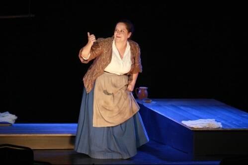 Sur scène, entre trois niveaux de plancher qui servent à la fois de chambre, de sanctuaire et de terrain de jeux, Isabelle Andréani comble tous les espaces, créent tous les accessoires, imitent, si besoin, la réplique de Madame Aubain, du perroquet.