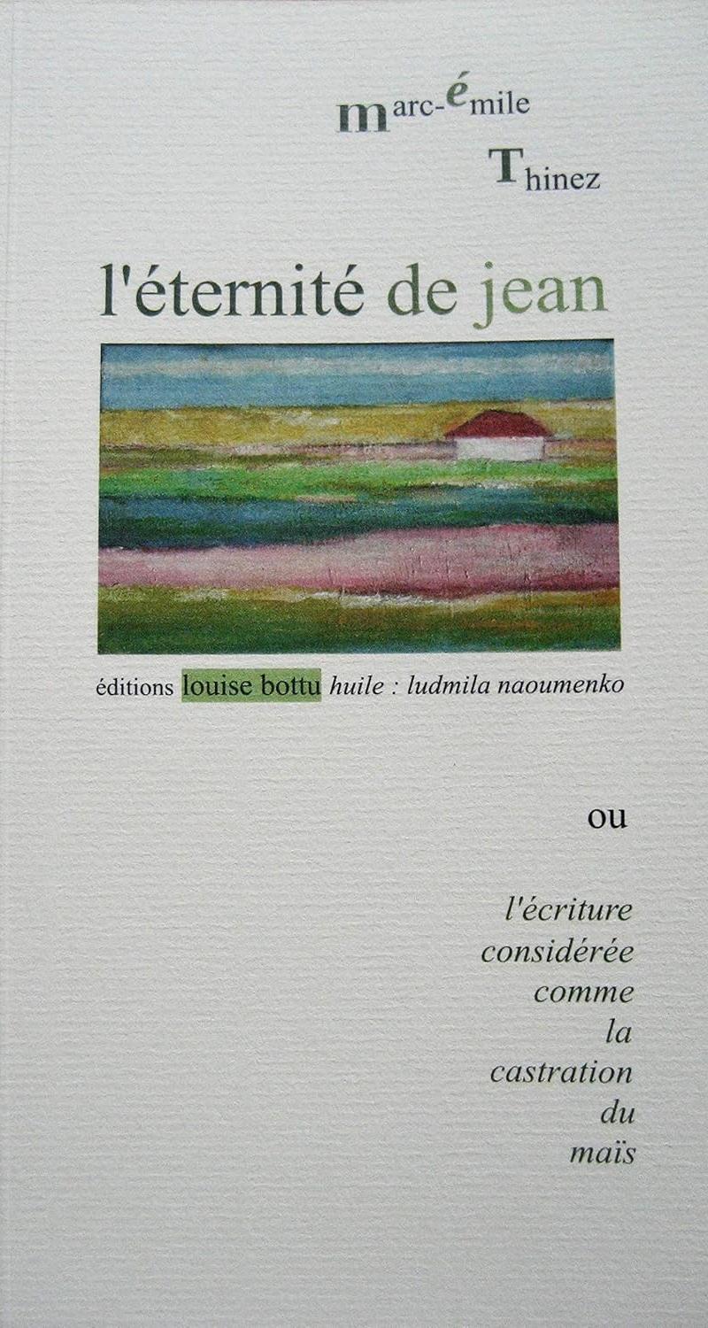 - L’Eternité de Jean ou l’écriture considérée comme la castration du maïs Marc-Emile Thinez, Editions Louise Bottu, 140p. 14€, 2018