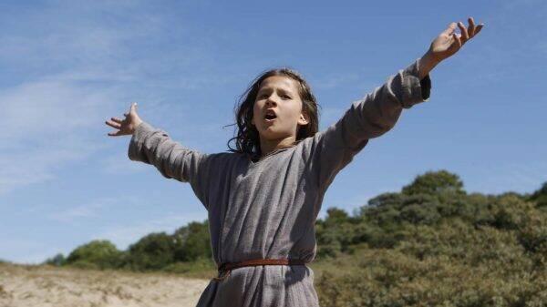 Quand, dans le dernier film de Bruno Dumont présenté à Cannes, résonne le premier chant, Jeanne d’Arc la guerrière, étendard à la main, fixe la nuée. C’est un œil souverain, il se substitue au monde, il devient le monde. C’est par lui et son injonction qu’on tombe dans la fiction, c’est par lui que se matérialisent la Normandie, filmée comme un paysage flamand, et la Guerre de Cent ans. Il distord les proportions et fait vibrer l’horizon, rejouant la partition de la terre et du ciel, de la dune et du vent, de la bergère conquérant les terres éternelles.