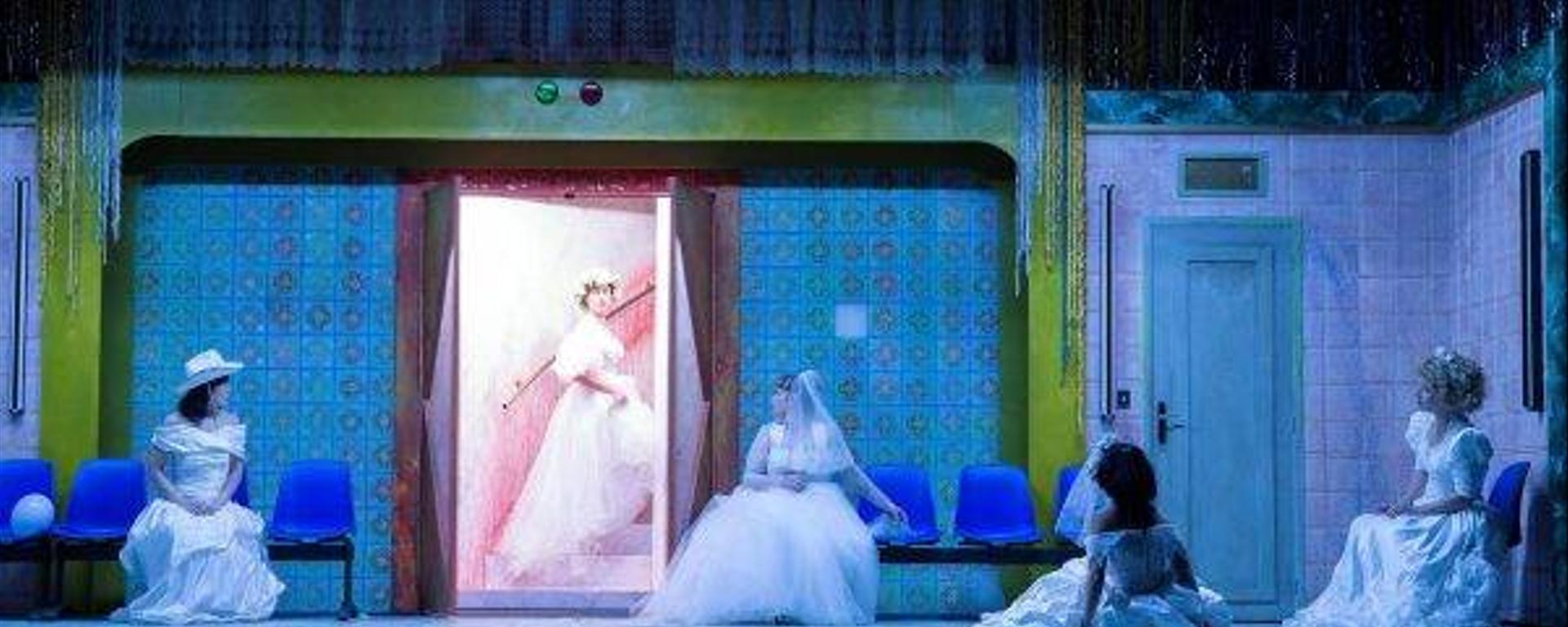 Jamais la production de fiction n’a été autant mise en avant comme nécessaire et vitale : une manière de suspendre la barbarie par les charmes de l’imagination, et aussi de guérir le mal par le mal. En affrontant les profondeurs redoutées du désir féminin, Shahriar sera guéri de son humiliation. Une vraie catharsis donc, et pour nous, le plaisir jouissif d’une narration labyrinthique où chaque conte s’ouvre sur un autre conte où d’autres personnages réclament encore qu’on leur raconte des histoires sous peine de mise à mort. Dans ce dédale de mondes qui s’ouvrent les uns après les autres, on ne s’étonne plus que Shahriar se perde jusqu’au matin et en oublie ses idées meurtrières. Fascinés nous sommes, nous aussi, devant la malle aux trésors : chaque cicatrice, chaque objet recèle en soi une histoire digne d’être écoutée, pour peu que nous ayons le temps de l’entendre – toute la nuit, au fond… Guillaume Vincent a choisi de garder une douzaine de contes issus du recueil, qu’il emboîte les uns dans les autres dans une dramaturgie à tiroirs plutôt fine où se joue un système d’échos efficace : le motif des trois sœurs qui « vivent sans hommes » se décline tout le long du spectacle, avec l’élément perturbateur de l’intrus amoureux. Les secrets de la première partie peuvent ainsi se déployer avec tout leur éclat sombre dans la deuxième partie plus mélancolique. Et si celle-ci s’égare un peu dans le développement d’un personnage dont on ne sait plus bien s’il joue, s’il rêve, et à quel monde il appartient, le spectacle finit tout de même par retomber sur ses pieds.