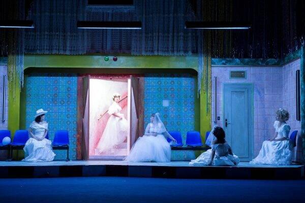 Quoi de plus essentiel que ce conte, qui dit l’urgence de raconter des histoires pour ne pas mourir ? Et quoi de plus proche du destin d’un artiste, comme le formule Guillaume Vincent dans un entretien avec Daniel Loayza, que cette suspension continue à l’attention de son auditoire, à sa lassitude et son plaisir ? Dans cette œuvre-monde, on le sait, Schéhérazade raconte chaque soir au sultan Shahriar une nouvelle histoire et chaque fois il répugne à lui couper la tête, impatient qu’il est d’entendre d’autres contes. Avec Schéhérazade s’est arrêté le massacre des jeunes vierges du pays, chacune décapitée après une nuit passée avec le sultan, pour assouvir son désir de vengeance : mortifié de l’infidélité de sa femme, le sultan veut ainsi s’assurer qu’aucune femme ne le trahira plus jamais. La mise en scène ne fait pas l’impasse sur cette violence primitive, et Guillaume Vincent réussit à allier le décalage parodique et l’horreur, d’autant plus grande peut-être, dans la première scène très impressionnante du spectacle. On ne renie pas la part du sang dans ces contes fondés, il faut bien le dire, sur la cruauté et la domination du désir masculin. Mais c’est pour consacrer d’autant plus royalement la puissance indomptable du féminin : ce n’est pas dans les histoires de Schéhérazade que le sultan va pouvoir être rassuré sur la violence du désir des femmes ! Au contraire : fortes, dominantes, passionnées, elles nomment leur désir et exigent satisfaction, échappent à leurs bourreaux ou se jouent d’eux. Et au bout de mille et une nuits, contre toute attente, Shahriar est sauvé.