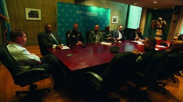 On assiste alors à une incroyable remise à l’échelle humaine des enjeux politiques où chaque décision, chaque problématique est corrélée à la logique de la ville et ramène les habitants à leur statut de citoyens actifs, détenteurs d’une partie du pouvoir. Wiseman ne filme pas une théorie du politique ; ce qui l’intéresse, c’est la très concrète expérience de la collectivité et de la communauté de destin. Qu’il s’agisse de la question des expulsions locatives, de la construction de logements abordables, de l’installation d’un dispensaire de cannabis dans un quartier pauvre ou de l’organisation de la parade des Red Sox, l’équipe de base-ball locale, tout est débattu et commenté, alimentant les rouages d’une ecclésia moderne et disparate. Si cette mise en scène de la parole reformule et corrige le discours officiel, en redéfinissant avec précision ses enjeux matériels, elle met également en évidence ce qui unit la ville aux paradigmes nationaux et mondiaux. A l’occasion d’une réunion d’anciens combattants, rescapés de toutes les guerres modernes (Des deux guerres mondiales jusqu’aux conflits afghan et irakien en passant par la Corée, le Vietnam…), la vigueur et l’urgence des témoignages réactivent la galerie de tableaux historiques – l’arrivée des Pères Fondateurs, le premier Thanksgiving, la Boston Tea Party… – ornant la pièce, sortant ces épisodes de la symbolique pour réaffirmer leur importance sur des trajectoires humaines, complexes, traumatiques. Ce rapport fusionnel de Boston à la nation américaine, on le comprend, est rendu difficile par les relations plus que glaciales qu’entretiennent la mairie démocrate et Washington, siège du pouvoir fédéral.