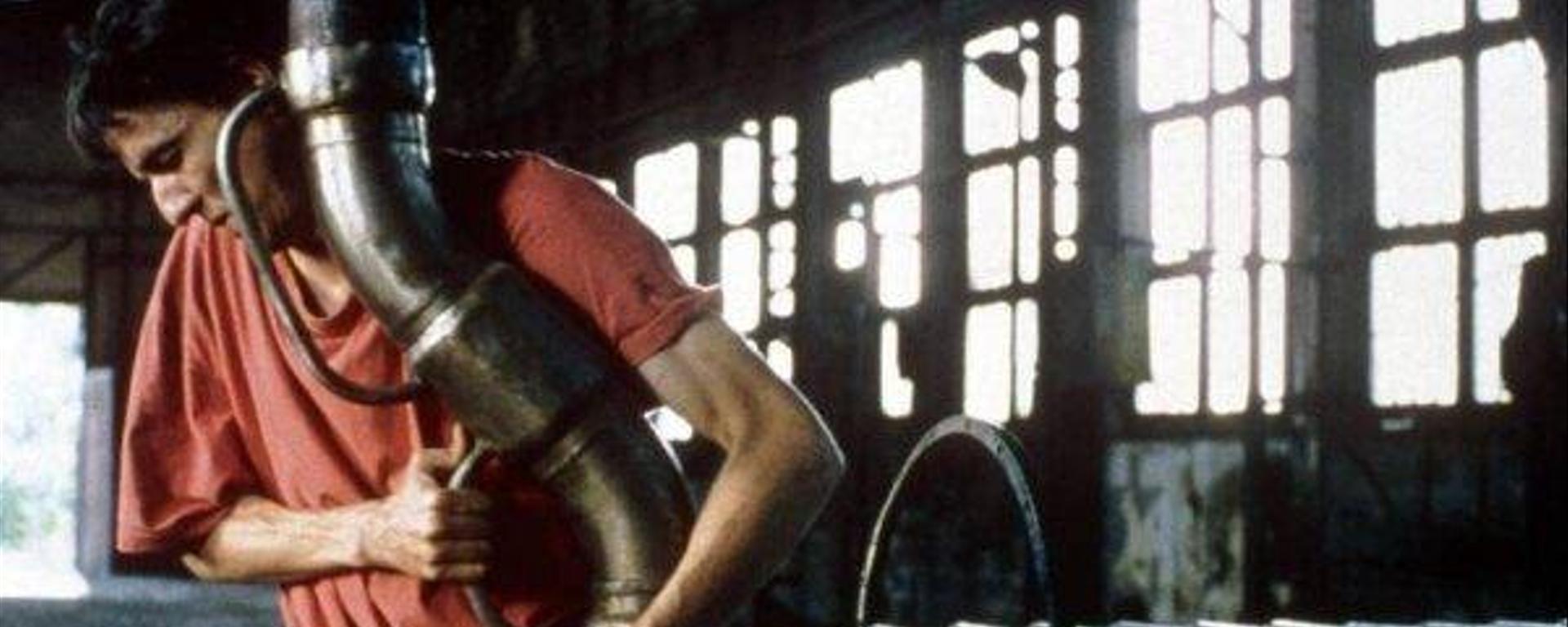 Les plans dans le film, les rouages dans la machine, les ouvriers dans l’usine… Guiraudie forge un film métonymique qui rend à la caméra son honneur de machine. La caméra accompagne les déplacements ou les regards des personnages dans de longs et réguliers mouvements panoramiques. Ce n’est pas une usine à l’arrêt mais une appareil qui fonctionne à bas régime. De quoi déclencher les dernières palpitations d’un organisme sur le point de mourir. Progressifs les plans qui vont de l’entrée à la sortie de champ, progressifs les mouvements de caméra, progressifs les regards qui se tournent vers la cible d’un désir naissant. La progression vers la fin, cette lente progression filmée dans une trame de cinq jours, le temps nécessaire pour défaire la dernière machine, le dernier phallus en place. La distance entre les corps ne tombe pas en un instant, elle résiste. Comme l’Ubitona et ses automatismes enrayés, elle renâcle. Précisément, c’est parce que ces corps, s’ils sont rouages ou machines, ne sont pas automatiques, que la distance a besoin du temps pour s’émousser.