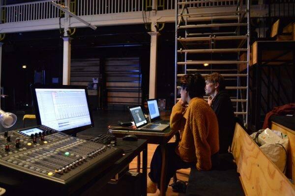 – Sarah Baraka et Eliott Pradot, fondateurices du Collectif MUES, en cours de création de S’étreindre, de Nuit et Les noyaux. Page Facebook : https://www.facebook.com/CollectifMUES
