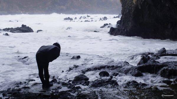 Comme chaque année, telle l’écume qui revient inlassablement se déposer sur le rivage, Junya s’en retourne à Anamizu, dans la pittoresque péninsule de Noto ; il emmène avec lui Sara, et lui fait découvrir son Heimat, la patrie de son enfance, dans une troublante marche arrière vers le passé, qu’il revisite et commente, photographies en noir et blanc à l’appui. A leur suite, le film se faufile dans les méandres du temps et offre, pour qui prendrait le temps de l’observer, d’éprouver la blessure mise à nue de Junya. Car si l’hiver, cette saison honnie, le ramène invariablement à Anamizu, c’est qu’il y a laissé une dette contractée au passé. Manière de garder en souffrance (et donc, vivante) la pensée de ce grand-père disparu, de son temple Shinto et de la promesse non tenue – Junya avait promis à son aïeul de s’occuper du temple à sa mort.