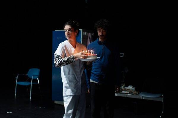 Il faut souligner le travail extraordinaire (« extra-ordinaire, qui sort de l’ordinaire », dit Loïc, l’auxiliaire de vie d’Adel) de Maurin Ollès et son équipe, toujours justes, toujours fins dans cette traversée difficile des proches « vers le spectre », ces fameux TSA (troubles du spectre autistique), aussi flous et généraux que chaque « trouble » est unique. Le cas d’Adel nous renvoie à des questionnements profonds de nos sociétés : comment accueillir la différence dans le cadre collectif de l’école, comment revoir nos méthodes éducatives pour s’adapter au plus grand nombre et aux enfants qui ne « fonctionnent pas pareil » (en dehors de l’autisme, on sait que de nombreux enfants souffrent d’une inadaptation au système scolaire classique…), comment gérer ces personnes différentes sans forcément les cantonner à une gestion médicalisée ? Adel, en tout cas, déplace. Il déplace son père, d’abord, bien forcé de se responsabiliser, les autres enfants (qui ne semblent pas tellement troublés de cette différence), les infirmières qui s’attachent à lui, sa maîtresse d’école. C’est ce déplacement qui est mis en scène, à travers des dialogues qui tombent toujours juste et une direction d’acteur.ices au cordeau, sans ostentation, avec un enchaînement de situations parfaitement rythmé qui nous tient rivé.es au plateau.