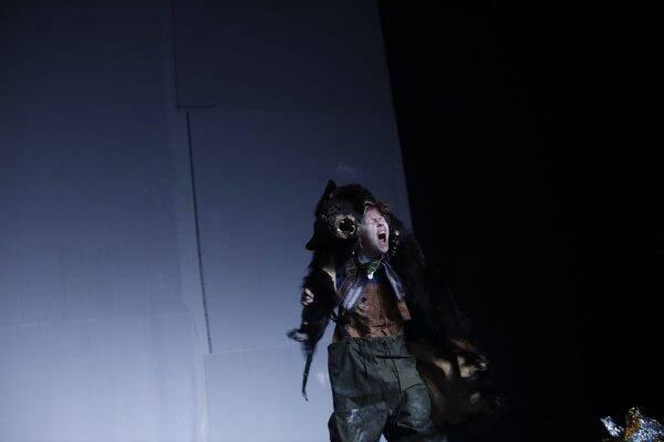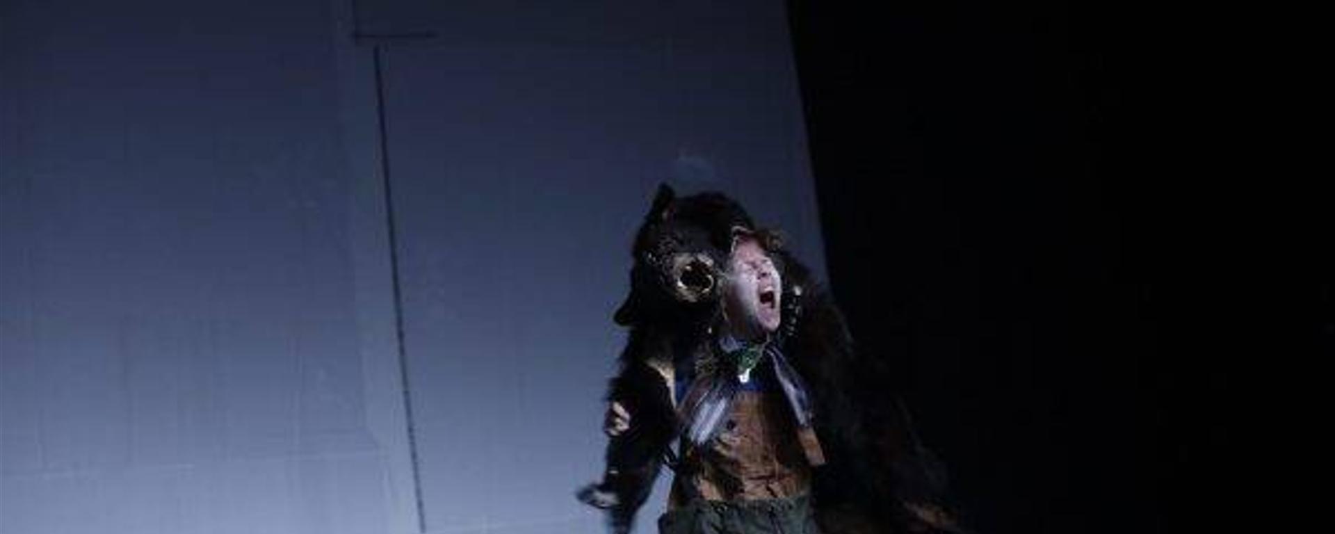 Toutefois, ce n’est pas sans balises narratives que l’on s’embarque dans la forêt du Petit Poucet. Car le conteur, qu’incarne Carole Costantini, toujours nous montre la voie, posant les jalons chronologiques qui ramènent à la vérité universelle et originelle de ce conte. Ainsi, on en reconnaît les motifs clés tels que l’abandon parental et la ruse du jeune héros espiègle, considéré benêt, qui espionne et fomente des plans de survie. La particularité de cette narration, c’est le lien qui existe entre la conteuse et Poucet : une relation-projection, qui rend le récit personnel et intime. Plus qu’une simple actualisation, Les Ogres est une réappropriation, une invention modelée dans la chair de ce personnage-frontière qu’est le narrateur, entre la fiction et le réel, entre son alter ego Poucet et le contact avec le public.