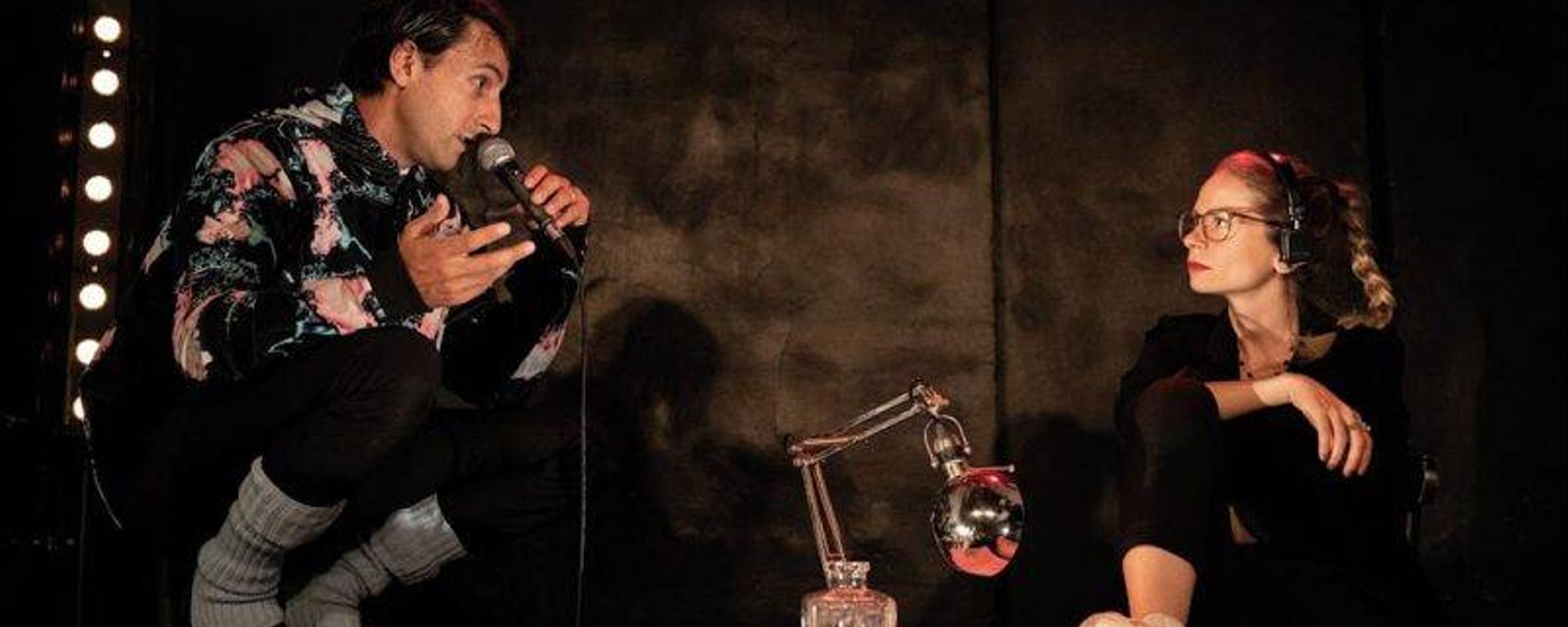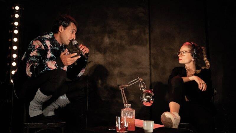 Sous nos yeux mi-agacés mi-amusés, le talentueux comédien Clément Carabédian incarne alors tour à tour un Gustave Malher psychorigide et jaloux de sa femme, la compositrice Clara Mahler, un Chopin névrotique se chamaillant avec Jules Sandeau et Alfred de Musset, un Richard Burton suffisamment imbibé pour se mélanger les pinceaux avec son traducteur (Louis Dulac, hilarant) mais dont le reste de sobriété lui sert à étriller Elizabeth Taylor avec une réjouissante méchanceté, mais aussi un Jacques Demy admiratif d’Agnès Varda et un Jean Tinguely dévoué à Niki de Saint-Phalle. Au micro de la journaliste, ils font preuve d’une mauvaise foi à toute épreuve, de masculinité toxique mais aussi, parfois, de tendresse et de soutien inconditionnel. Ecrit à partir d’archives réelles, le spectacle met ainsi en lumière et en son la rivalité et la solidarité des couples d’artistes, de manière ludique et didactique.