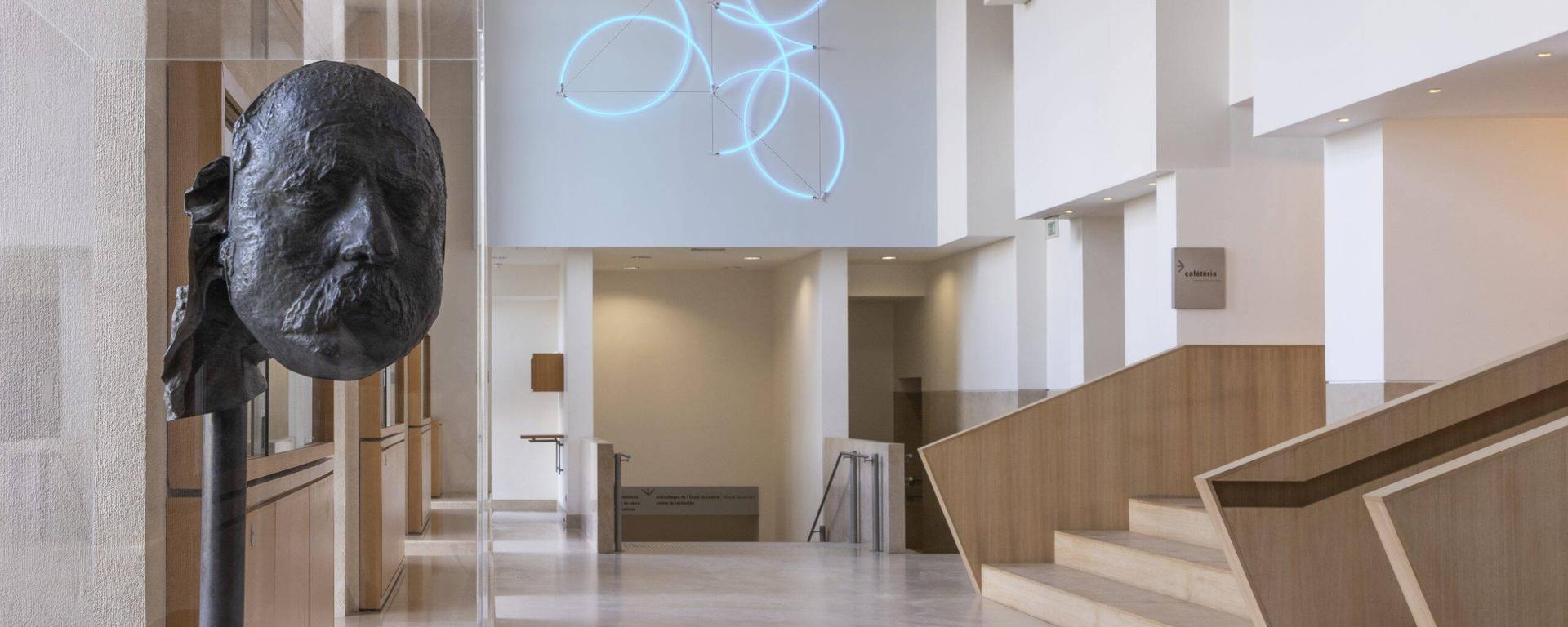 π barroco n°2 bleu, 1=45° (angles du même côté), 7 éléments, car tel est le titre de l’œuvre de François Morellet, et La Marseillaise du sculpteur César rejoignent les deux sculptures d’Anthony Gormley, d’un chevalet et d’une photographie de Francis Bacon, portant la collection contemporaine à six œuvres, fruit du don du mécène Majid Boustany.
