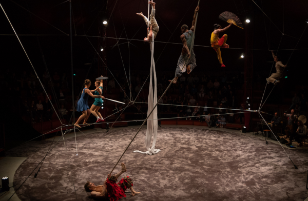 - Coeurs sauvages, conçu et mis en scène par Antoine Rigot et Agathe Olivier (Cie Les Colporteurs), avec Valentino Martinetti (danse, acrobatie), Anniina Peltovako (fil, clown), Riccardo Pedri (corde lisse), Molly Saudek (fil), Manuel Martinez Silva (tissu aérien), Marie Tribouilloy (mâts fixe et oscillant), Laurence Tremblay-Vu (funambule), Damien Levasseur-Fortin (guitare, contrebasse), Coline Rigot (violon, voix) et Tiziano Scali (électro-acoustique), jusqu’au 2 avril à La Villette (Espace Chapiteaux).
