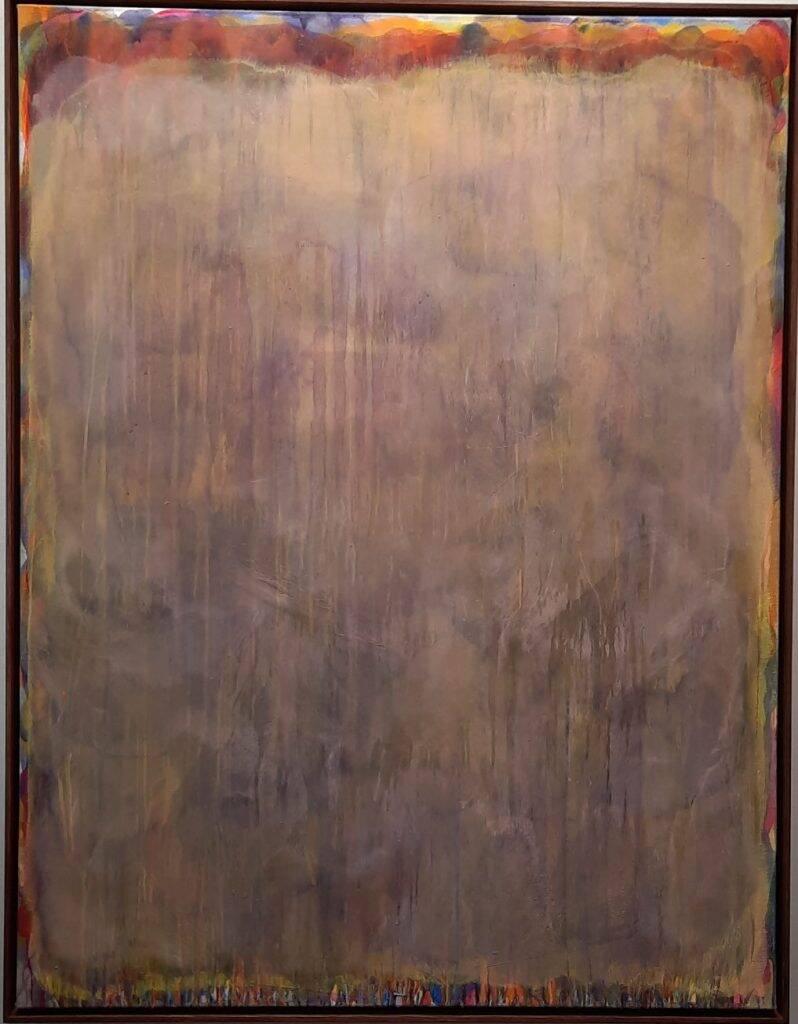 C’est aussi à la Galerie Catherine Issert, où nous avions découvert les photographies d’Alexandre Dufaye lors de Paris Photo, que notre regard s’est intrigué. La peinture aux résines alkydes sur Tergal a touché notre regard. La peinture apaise, ouvre un autre monde aux teintes roses et dorées, nous invite à entrer dans un état proche de la méditation. Douceur.