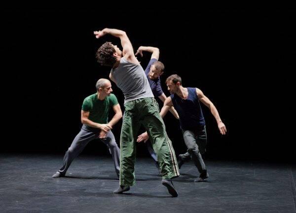 Un à un les danseurs, Brendan Evans, Yan Leiva, Albert Nikolli et Raúl Serrano Núñez, entrent en scène avec un geste répétitif, presque obsessionnel, de poser leur main sur leur propre crâne, comme la recherche d’une éteinte ou tout du moins d’un contact. Perdus tout d’abord dans leur solitude, ils vont finalement se trouver et pouvoir enfin communier ensemble. Dès lors, le moindre de leur mouvement sera parfaitement imbriqué aux autres et impliquera la suite de la chorégraphie. Ils partent ensemble à la découverte sensorielle de leurs limites, leurs gestes en apparences hasardeux sont en réalité parfaitement calés. Avec la bande son minimaliste de Thom Willems, l’atmosphère se remplit des claquements de main, de coude, de pieds, de corps qui s’entrechoquent, se logent et se délogent, se tricottent.