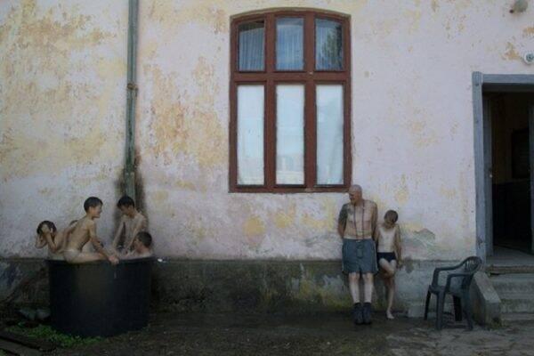 Sparta s’orchestre donc en deux parties distinctes, la première et la plus courte mettant en scène la vie installée d’Ewald, et distillant peu à peu le malaise quant à son orientation sexuelle et son attirance pour les enfants. Outre la scène de sexe avortée avec sa compagne, il se montre toujours bienveillant avec les jeunes gens et se plaît à leurs côtés — à l’instar de cette scène où il rejoint spontanément un groupe d’enfants pour se livrer avec eux à une bataille de boules de neige. Contrairement à son frère dans Rimini, Ewald est un homme introverti, discret et silencieux. Il semble porter en lui un malaise et une inadéquation à la vie qui le poursuit tout au long du film. Il faut attendre la seconde partie du film pour que se fasse clairement jour son penchant pervers. Ce « centre de judo » est en réalité l’occasion pour Ewald de faire défiler les enfants presque nus, de les photographier en train de montrer leurs muscles, et de leur fournir une sorte d’éducation parallèle, où ils reçoivent des noms mythologiques et ne peuvent franchir les portes du centre qu’à la condition de réciter correctement un mot de passe. Symbole de son isolement, ce centre de judo est également pour Ewald une manière de recréer un monde acceptable et perméable à ses fantasmes condamnables. S’il ne passe jamais à l’acte, Ewald contemple tous les soirs sur un écran géant les photos prises durant la journée, exhibant les corps nus et filiformes des enfants. Cantonnant sa perversité à une forme de pulsion scopique, le personnage d’Ewald fournit ainsi une métaphore du cinéma d’Ulrich Seidl : la volonté de donner à voir et de mettre en scène les pulsions les plus inavouables et les fantasmes les plus profonds. Mais le plus grand trouble qu’on éprouve devant Sparta provient sans doute du fait que le personnage d’Ewald n’apparaît jamais comme intrinsèquement mauvais et malveillant. Pour condamnables que soient ses penchants, ils ne prennent jamais la forme de violences à l’encontre des jeunes gens. Bien plus, Ulrich Seidl cultive l’ambiguïté en mettant en scène les familles de ces enfants comme bien souvent plus violentes qu’Ewald. En témoigne la scène où un père rabroue son fils, le trouvant mou et lui reprochant son « tempérament de femme » lorsqu’il s’agit de tuer un lapin. Dès lors, bien plus qu’un lieu de dangers et de vices, le centre ouvert par Ewald fournit un espace de sérénité et de liberté pour ces enfants qui voient dans cet endroit la possibilité de jouer dans l’insouciance la plus sincère, Ewald jouant le rôle de l’adulte bienveillant et protecteur. Le lieu même, avec sa palissade de bois, rappelant un château médiéval contribue à faire de cet étrange centre un lieu où se brouillent toutes les valeurs. Lieu de l’ambiguïté par excellence, ce centre — nommé Sparta — condense la tension dramatique, en ce qu’on craint toujours que s’y produise le pire. Ulrich Seidl joue avec le spectateur en faisant coexister les penchants troubles d’Ewald avec l’innocence des enfants. Hautement dérangeant et sans doute en cela problématique, le film de Seidl pourrait laisser entendre que la perversité d’Ewald est, en fin de compte, un moindre mal — tant qu’il ne passe pas à l’acte — face à la violence dont peuvent faire preuve les parents des enfants concernés.