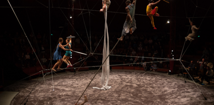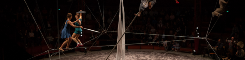 Dans un entrelacement de fils, cordes, tissus et mâts (fixe et oscillant), la compagnie de cirque Les Colporteurs transforme les lignes de fuite en points de rendez-vous. Sept personnages aux airs d’oiseaux y déambulent, tout en équilibre et en grâce, et tentent de réinventer leurs trajectoires. Tout est à réapprendre : se relever, se tenir debout, […]