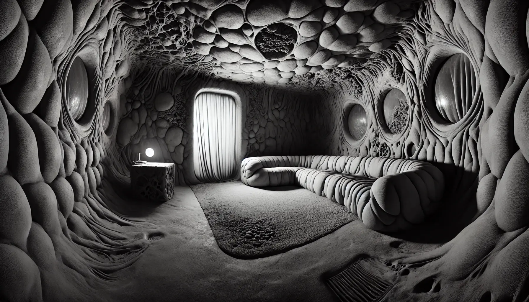 Le salon comportait une forme molle qui devait être un canapé. Impossible de savoir en quelle matière il était fait. Peut-être un mélange de liquide et de chair. Lorsque, plus tard, je me suis avachi dessus, j’ai eu l’impression d’être sur un énorme sein, capable d’épouser la forme de mon corps. Il y avait quand même une table classique et deux chaises. Les pieds étaient recouverts d’une protection en plastique, certainement pour éviter les frottements. J’ai repéré, à trois endroits différents, deux trous au niveau du sol, de la taille d’une prise électrique. On m’a recommandé de ne rien y brancher de plus fort que dix ampères. À l’intérieur, pas de téléviseur, pas de chauffage. « Le CoKon régule sa température de façon autonome. » Une dernière chose à noter : la présence d’une sorte de branchie. Des fentes, semblant gérer l’aération du salon, étaient positionnées près de la porte d’entrée. Elles ondulaient à un rythme régulier.
