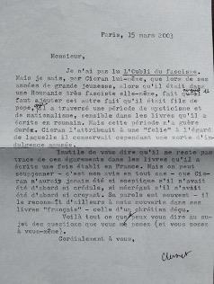 En d’autres termes, l’extrême lucidité affichée par l’auteur n’avait d’égal que l’immense imposture de l’homme qui, dans le même temps, orchestrait minutieusement son image d’ascète apatride étranger au milieu culturel, aux médias et aux petitesses de son époque, pour mieux dédier son existence à l’intemporel, à l’absolu et aux grands auteurs de l’histoire littéraire et philosophique. De mon travail de recherche, je ne garde donc qu’un seul bon souvenir : le fait qu’il m’ait permis d’échanger avec Clément Rosset à qui j’avais envoyé mon mémoire pour connaître son avis puisqu’il avait été l’ami de Cioran, mais aussi professeur de philosophie à l’université et un écrivain atypique. Aussi, après avoir lu le livre qui m’avait décillé, je n’ai pu m’empêcher de lui écrire pour savoir – et surtout essayer de comprendre – ce que lui pensait de cette « affaire ».