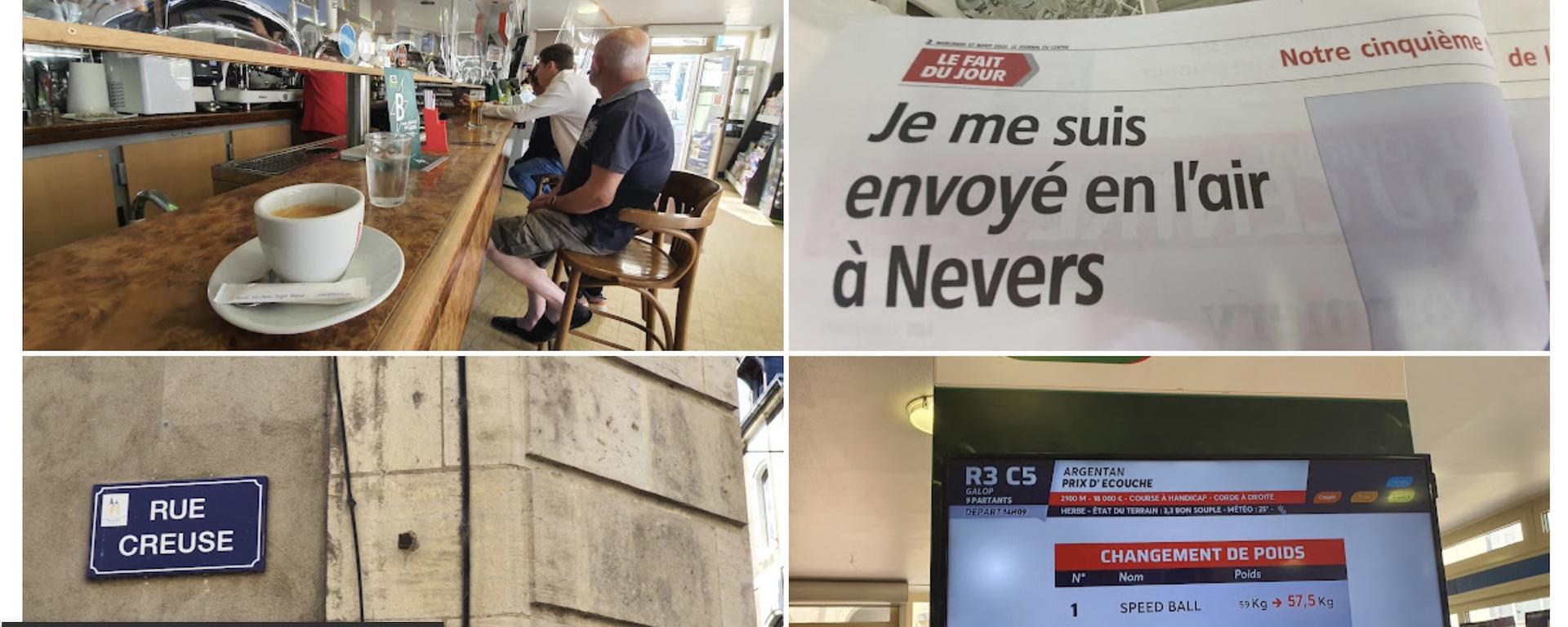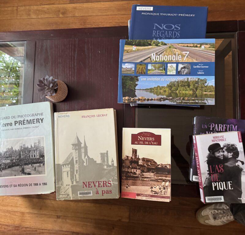 Heureusement, sonne la fin de la formation. Et la médiathèque me donne environ vingt livres à lire sur Nevers : Nevers au fil de l’eau, Nevers pas à pas, Nevers de 1906 à 1956, Nevers d’hier à aujourd’hui, Les environs de Nevers, Les écrits de sainte Bernadette et sa voie spirituelle, Bulletin mensuel de la Chambre de commerce de Nevers, etc.