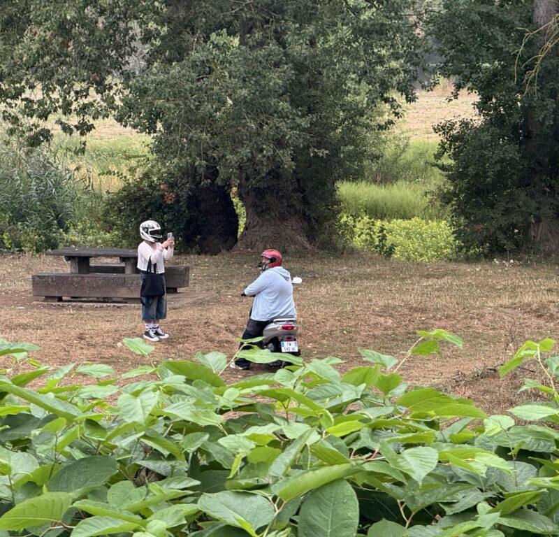 Sur le chemin, je rencontre des gens casqués, dangereusement étranges, errant sur les berges. Une nouvelle mode ? Perché sur sa moto, de loin, l’un m’alpague.