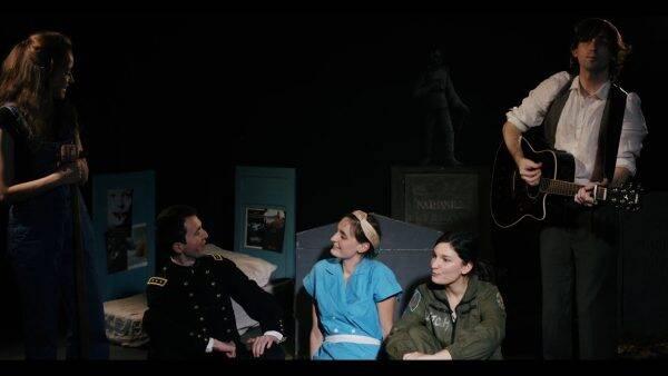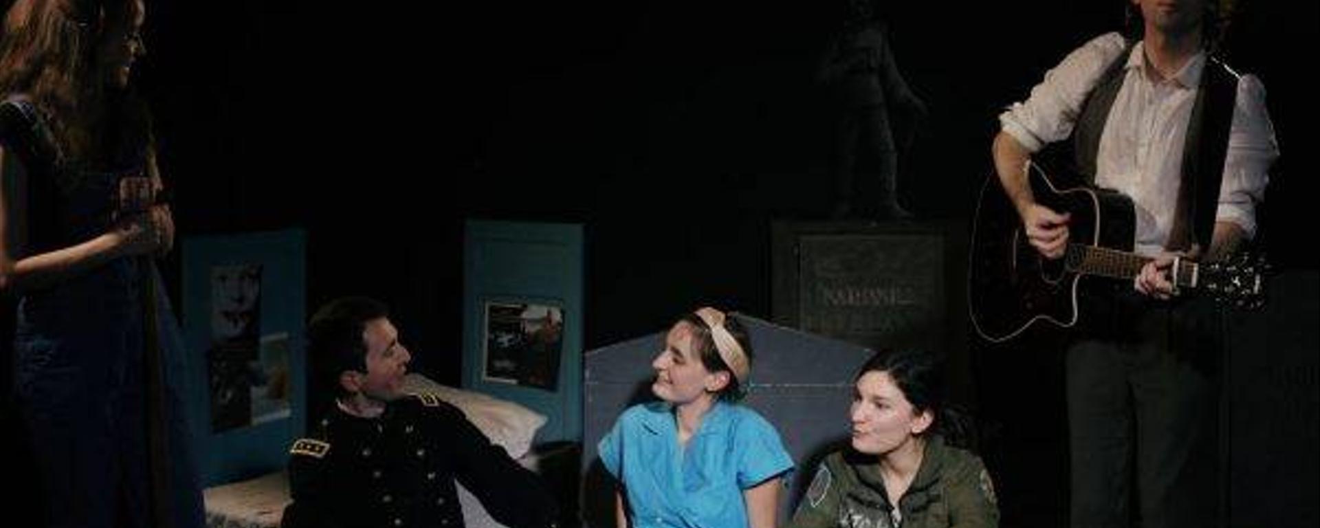 On découvre ainsi un récit très riche au milieu d’un décor qui au contraire respire l’économie de moyens, mais qui n’en est pas moins tendre et touchant – à l’image de la pièce. Pour nous plonger dans le fantastique, les Wonderbiches emploient tous les moyens à leur disposition : des lumières oniriques, quelques airs de guitare parfois accompagnés d’une chanson, une chorégraphie de claquettes et un numéro musical « façon Broadway » simple et émouvant. J’ai finalement retrouvé dans L’oubliée ce qui fait pour moi toute la saveur de la jeune création théâtrale : une créativité crue qui ne sait éclore que dans la contrainte extrême.