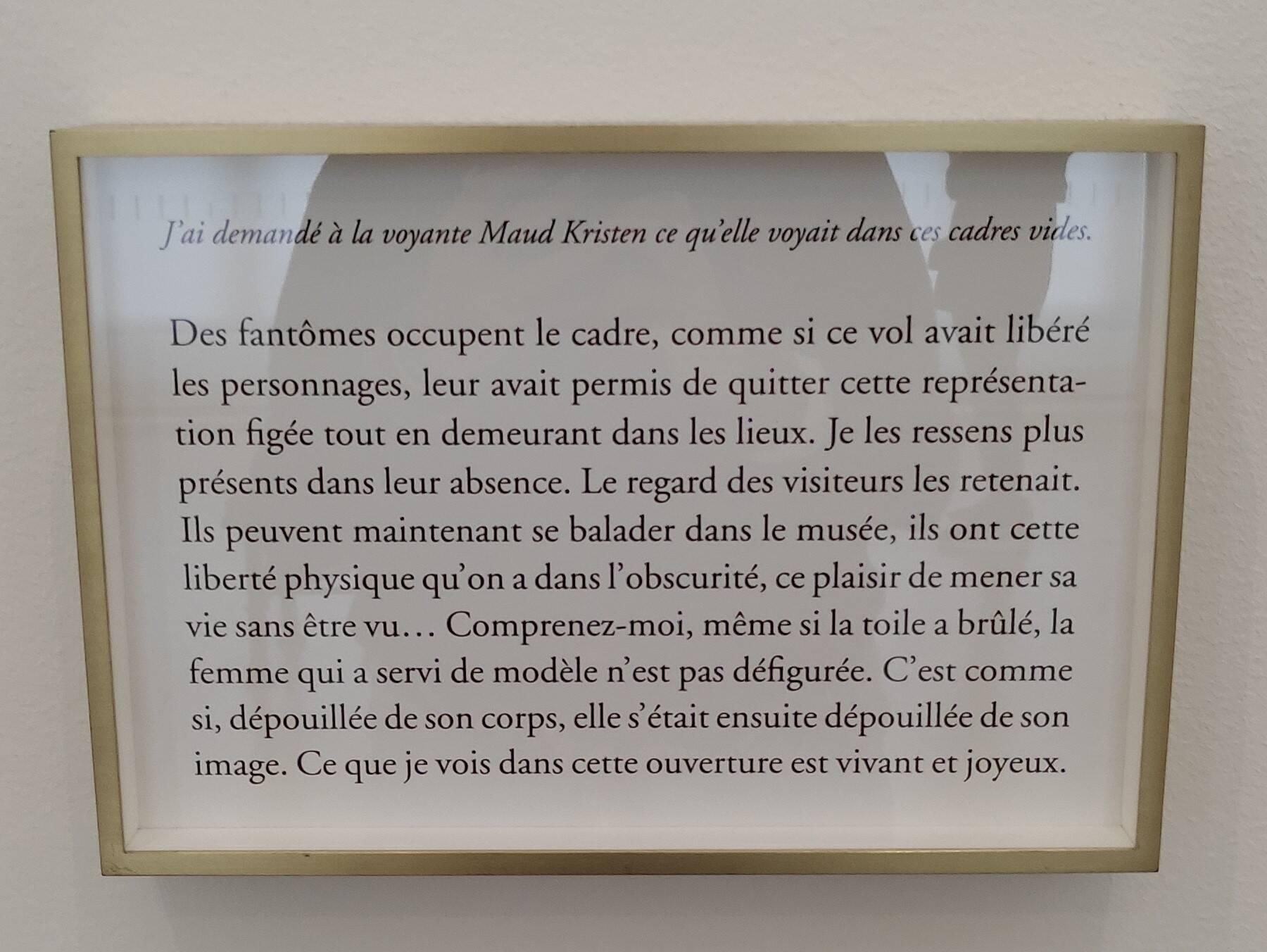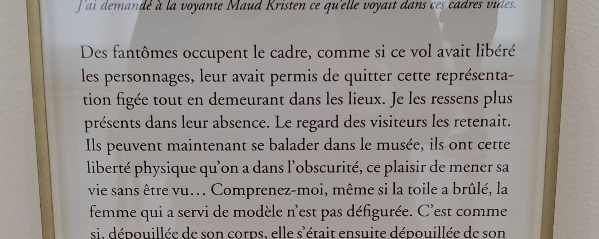 Mais, surtout, Sophie Calle nous interroge de manière remarquable : qu’est-ce qu’une œuvre d’art ? Existe-t-elle encore lorsqu’elle n’est plus qu’un souffle (Les Picasso fantômes) ? La Chèvre est-elle encore la Chèvre lorsqu’elle est vêtue de blanc ? Invisibilisée. Empaquetée. Prête à être emportée.