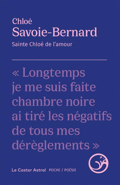 Voix majeure de la littérature poétique québécoise, Chloé Savoie-Bernard est enfin éditée en France avec son dernier recueil, Sainte Chloé de l’amour. Derrière le bleu intense de ce nouveau volume des « Poche / Poésie » du Castor Astral, se cachent des textes non moins intenses et un sujet qui pique la curiosité. Le recueil, organisé en six parties, s’ouvre sur l’éducation religieuse de l’autrice.