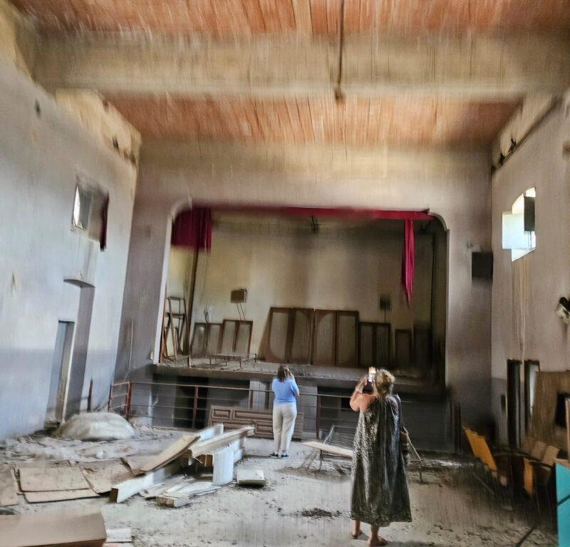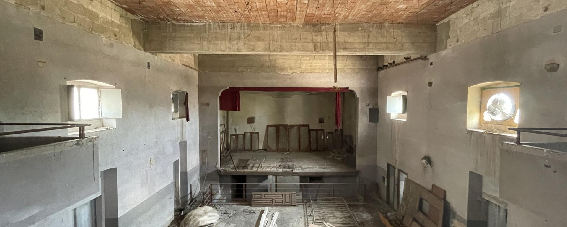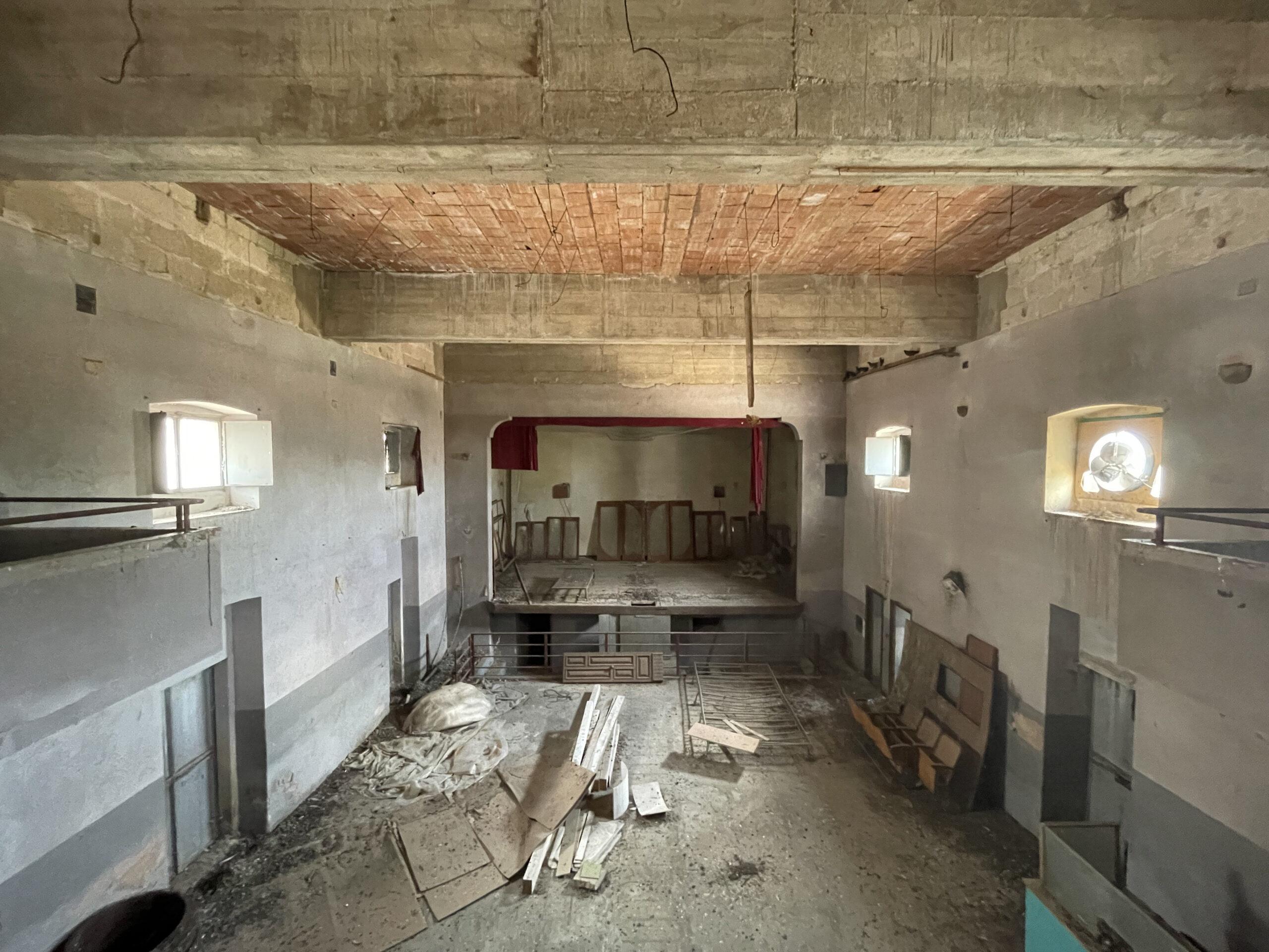 De loin, il ressemble à un paquebot. Tout en longueur et tout en brique, j’ai dû passer des centaines de fois devant sans le remarquer. En hauteur, l’enseigne “ C I N E M A “ où il ne reste que le I, et, plus étonnant, un mégaphone perché sur une tour. Nous attendons que le propriétaire du cinéma, le Dr d’Urso, sorte. Pour le trouver, nous avons demandé à ma tante qui nous a renvoyés à une pharmacienne, pour finalement obtenir son contact à travers ma belle-cousine ; petite ville, tout le monde se connaît. Mon père a mis plusieurs jours avant de l’appeler. Il nous a donné vingt minutes pour la visite.