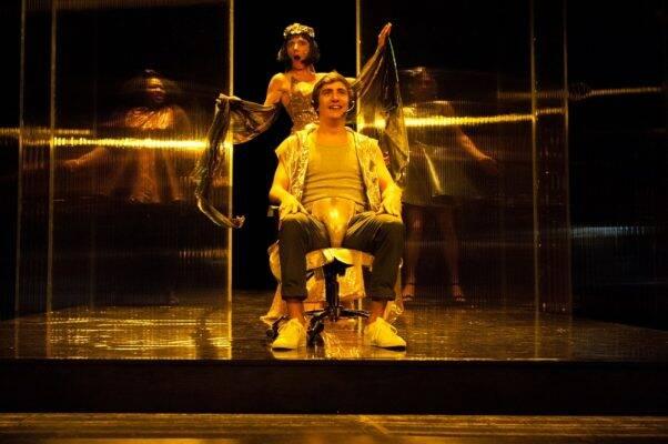 Le cyber amour, c’est d’abord et avant tout une ode à l’art de la métamorphose. Comme dans un cabaret, Alix et Roman se composent des alter ego, ces versions déconditionnées de leur identité. Pendant que Roman « joue » avec un robot sexuel appelé Harmony, Alix devient Marilyn et rencontre SweetxLover, un avatar féminin d’une quarantaine d’année. À travers LOVE-LIFE et Harmony, Pauline Ribat donne aussi à voir les créatures intemporelles qui peuplent nos fantasmes collectifs à l’instar de la Princesse d’Egypte et du Beau Brun façon Boysband. Aux nombreuses transformations des personnages répond celle du plateau. Comme éventré d’un coup de lame, l’appartement du couple modèle accouche d’un runway qu’arpente, en talons aiguilles, un maître de cérémonie qui chauffe l’ambiance autant que la carte bleue de ses clients et clientes.