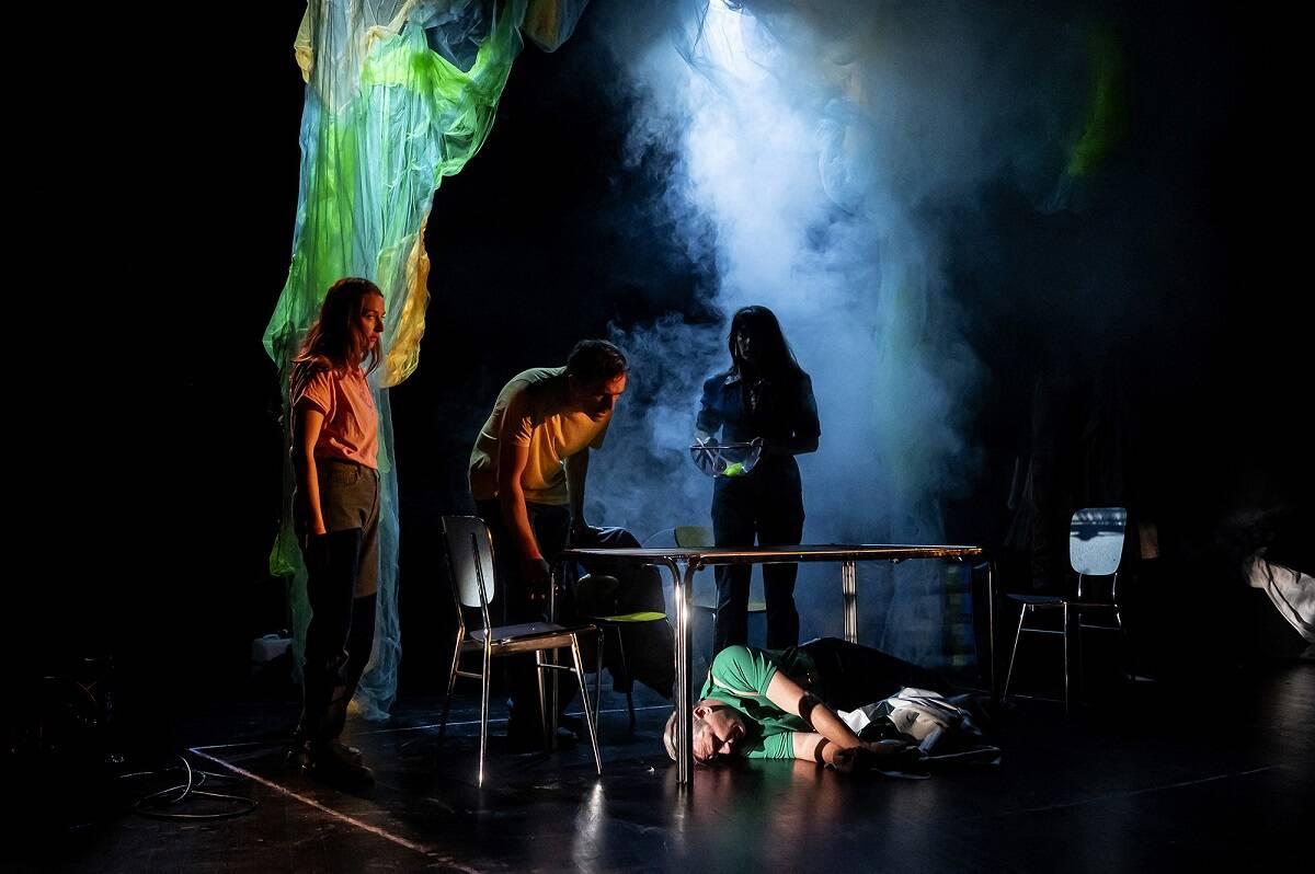 Après son diptyque, Le Démocrate suivi de Bananas (and kings), dont la portée dénonciatrice inclinait le geste de Julie Timmerman vers un théâtre à la fois fictif et politique, l’auteure opte pour un autre registre et décide de mettre à nu son espace mental et ses souvenirs de jeunesse. Dans une autofiction qui fond différentes temporalités, l’adulte que Timmerman est devenue scrute, d’un œil tour à tour sarcastique et indulgent, l’enfant qu’elle était évoluer au sein d’un schéma parental complexe et dysfonctionnel — voire “toxique”, si l’on en croit le psychologue consulté par la famille.