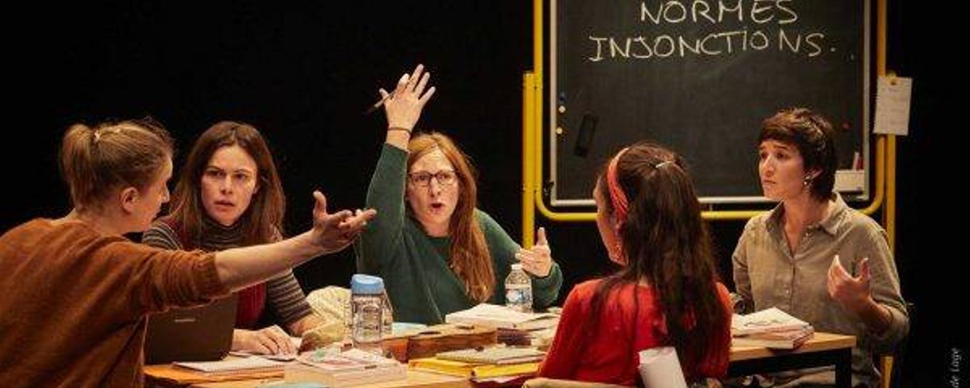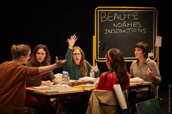 Comme une université d’été féministe condensée et au rythme endiablé, on suit une présentation sur l’hymen visant à déconstruire une mythologie de la virginité, une visite guidée d’une vulve (magie du théâtre), on apprend l’histoire (étonnamment tardive) de la cellulite, participe à une fausse intervention de Mona Chollet sur son livre Beauté fatale, on fait une piqûre de rappel des bases fondamentalement sexistes de la psychanalyse, on re-découvre le clitoris dans son entièreté… Les scènes s’enchaînent mais ne se ressemblent pas. Et si l’humour est toujours bien présent, cela n’empêche pas les actrices d’aborder des thèmes extrêmement sérieux, voire tragiques – mais toujours sans pathos. Attendez-vous toutefois à des envolées politico-lyriques qui vous donneront le frisson !