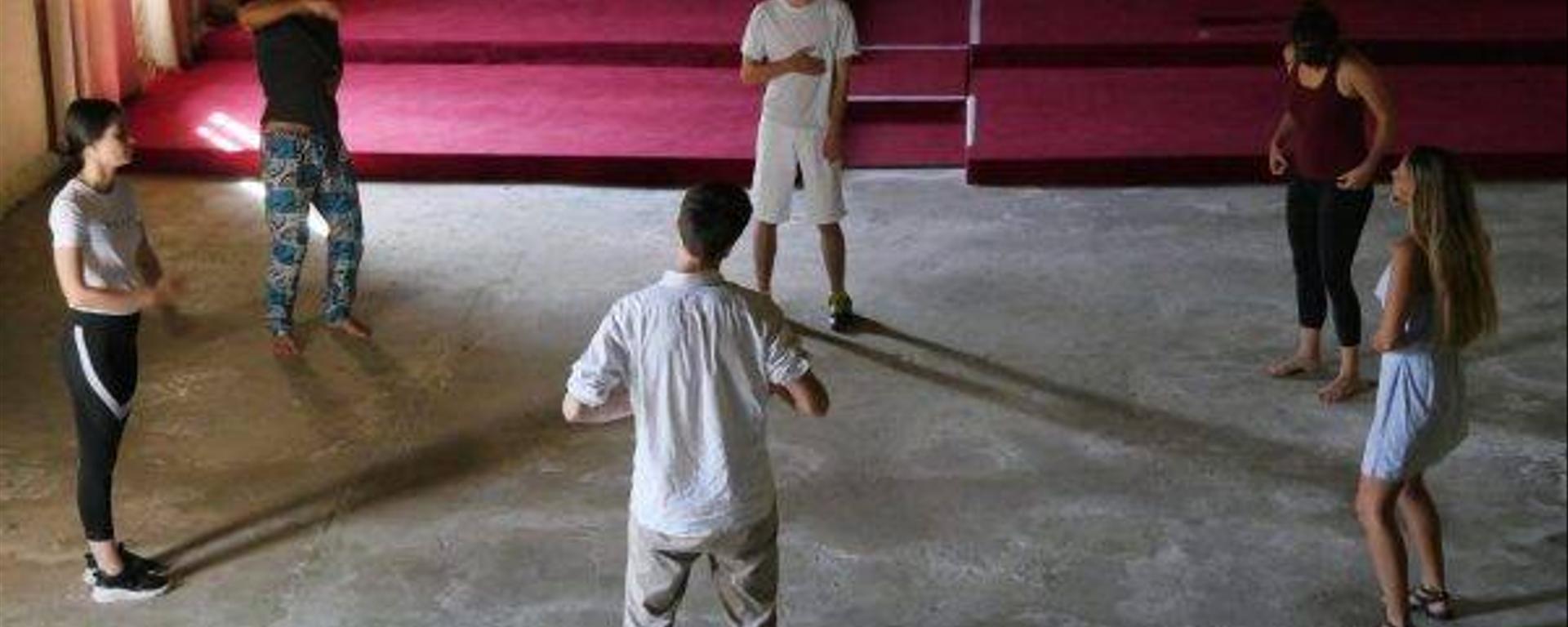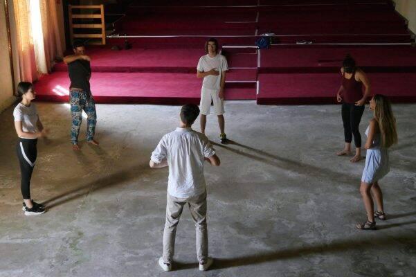 –Sarah Baraka et Eliott Pradot, fondateur·rice·s du Collectif MUES, en cours de création de S’étreindre, de Nuit et Les noyaux. Page Facebook :https://www.facebook.com/CollectifMUES