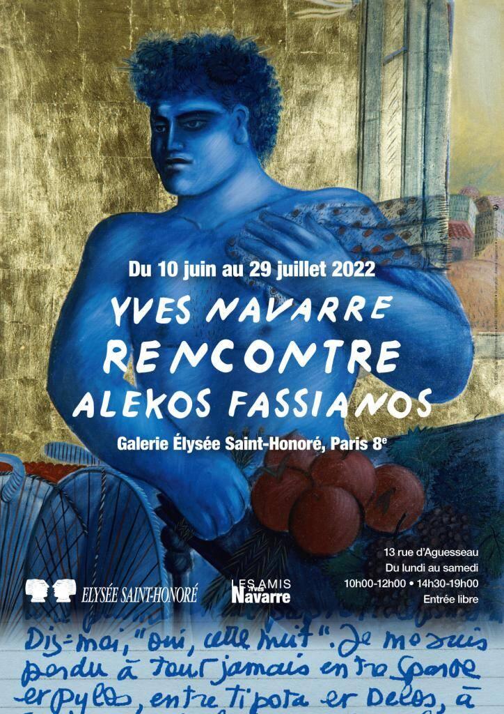 Inaugurée le 10 juin à la galerie Élysée Saint Honoré, l’exposition « Navarre rencontre Fassianos » a de quoi réjouir. D’abord, elle se tient enfin, après une interminable attente qui aura vu le second de ses artistes partir – dès lors elle s’accompagne d’une aura d’autant plus singulière et touchante – ensuite, elle est le lieu d’une communication amicale et chaleureuse entre les arts et les artistes, entre la littérature et la peinture. Il faut dire en effet la tristesse de la mort d’Alekos Fassianos, ce 16 janvier 2022 ; l’artiste grec, internationalement reconnu, était lui aussi embarqué dans cette belle aventure que celle d’une exposition, mené par l’ami du peintre, Dimitris Sabatarakis, avec le concours dynamique de l’association des Amis d’Yves Navarre.
