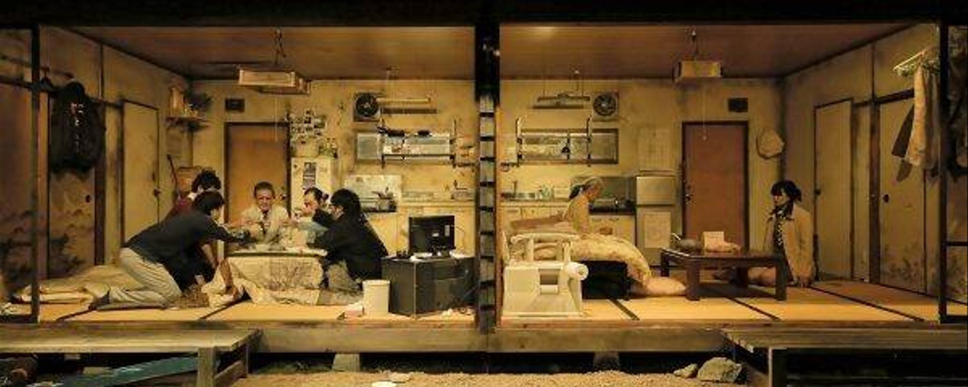 Kurô Tanino construit sa pièce avec la même minutie avec laquelle il construit son décor : chaque dialogue, chaque geste, tels des touches de pinceau, participent à créer l’image de ces vies minuscules, dans toute la profondeur de leur ordinaire. Mais au-delà du réalisme de la représentation des classes populaires ou moyennes du Japon rural, la subtilité de l’écriture fait émerger à la surface les fleuves souterrains de l’existence. C’est dans les répliques retenues et les monologues silencieux que se font jour la précarité, la solitude, partagées par tou.te.s tel un fardeau commun. Face à cela, il y a la communauté, si petite soit-elle, par laquelle on prend soin des autres, et, ce faisant, de soi-même : c’est offrir un cadeau au voisin, cuisiner une soupe pour sa famille endormie, rire et faire rire.