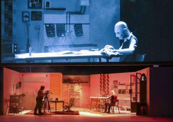 Spectacle généreux, voire théâtre fleuve (qui aurait dû durer six heures, mais qui n’en dure que trois sans entracte) cet objet théâtral nous submerge dans un imbroglio de paroles et de sons ayant un rapport plus ou moins proche avec le réalisateur. On y entend des extraits de textes d’Hermann Broch, d’Albert Kohn, ou de Manuel Vilas, tandis que résonne lentement les premières notes de la bande originale de Vivre sa vie (Jean-Luc Godard,1962), composée par Michel Legrand. Ces sources se retrouvent éparses, traitées dans des parties distinctes, ménagées sans transition à grands coups de fractures narratives et de distanciations brechtiennes où les acteurs commentent leurs propres rôles. Expérience infiniment perturbante pour le spectateur, ce qu’il croit être n’est pas, la fiction dans laquelle il s’immerge s’évapore : quand on imagine oncle Jeannot décédé en raison d’une mélancolique scène de déménagement, il réapparaît bientôt grabataire. Certes, de Jean-Luc Godard, on retrouve le goût du gros plan, l’amour du noir et blanc, dans À bout de souffle, et sans doute le lyrisme du drame intime. Mais le metteur en scène propose plus une mise en application de sa philosophe que de ses principes esthétiques.