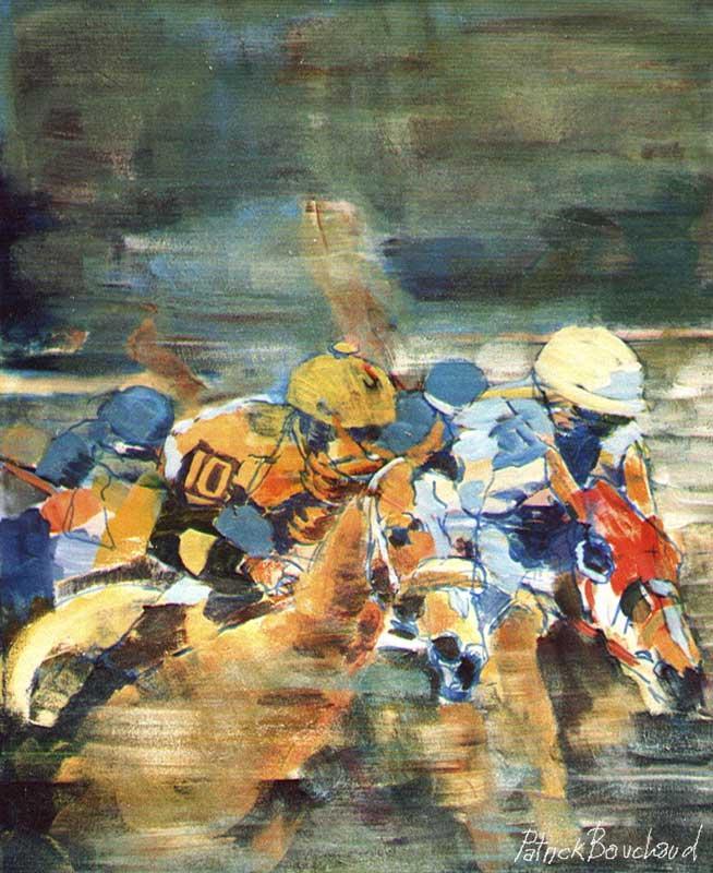 Comment ne pas apprécier le réalisme de la perception de cette course hippique? Le réalisme visuel d’abord, est saisissant. Comme si le lecteur empruntait pour quelques pages les yeux du spectateur présent sur place. Il fonctionne notamment grâce à l’approximation de la vision des formes aperçues par les spectateurs depuis les gradins qui traduit l’effet de la distance sur l’oeil. Par moments, les casaques des jockeys en course deviennent aux yeux de ce ‘’ spectateur-lecteur ’’, de simples «tâches», «des pastilles roses». L’ensemble du peloton galopant est «plus qu’une houle, un moutonnement de têtes montant et descendant sur place». Comme dans un tableau impressionniste, les diverses petites touches de couleur que sont ces chevaux montés offre une vue globale de la course. L’optique est prise en compte par le texte jusqu’à ‘‘l’effet des jumelles écrasant la perspective’’, ce qui accentue l’impression de ‘‘surplace’’ des chevaux. La vision de la foule présente dans les tribunes est également remarquable car elle saisit l’éclatement progressif de cette masse humaine durant la course: ‘’ la foule se détachait (d’abord un point noir, puis deux, puis trois, puis dix, puis par grappes entières ‘’. L’effervescence des hommes dans ce flot liquide qu’est le temps. L’expressivité des images de ce texte est unique car légère et puissante: ‘’ soudain le premier cheval, non pas franchit, mais crevât la haie.’’ Tel un photographe, le narrateur s’appuie sur le négatif pour faire éclore le positif.