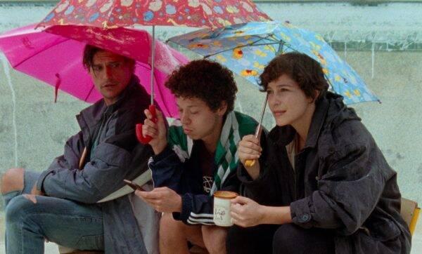 Tout à coup, une quatrième personne vient fermer la porte de la volière. Un masque bleu avec des attaches blanches surgit au détour d’une scène de groupe. Autour d’une table, une équipe de tournage débat : oui ou non, un des trois comédiens avait-il le droit de sortir surfer pendant son jour de congé, alors que le Portugal est confiné, qu’une pandémie sévit, et que ledit comédien doit tourner une scène très peu hygiénique de baiser ? Le cerveau rétif du spectateur résiste à la vérité, pourtant le coup de théâtre s’impose. Si les personnages sont enfermés, c’est qu’ils sont confinés. S’ils n’avaient pas de masque, c’est parce que nous étions dans un tournage, et qu’ils jouaient, eux, la comédie, contrairement au reste de l’équipe du film qui fait soudainement son apparition à la mi-temps de ce film somptueusement coupé en deux. Enfin, si les personnages n’ont pas de vie, c’est que le reste du monde a en partie cessé d’en avoir une aussi.