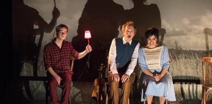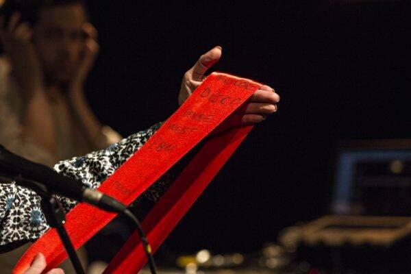 Thomas Pondevie – La première forme du spectacle, The Haunting melody, date de janvier 2015. On avait construit une fiction-cadre : des personnages se trouvent dans un studio d’enregistrement pour la post-synchronisation d’un film d’horreur, qui donnait lieu à des discussions théoriques sur le son, la musique, l’écoute… Est-ce que c’était la bonne forme ? En fait, avec le recul, c’était comme deux spectacles en un, une sorte de collage que Mathieu tirait plutôt du côté des textes théoriques.