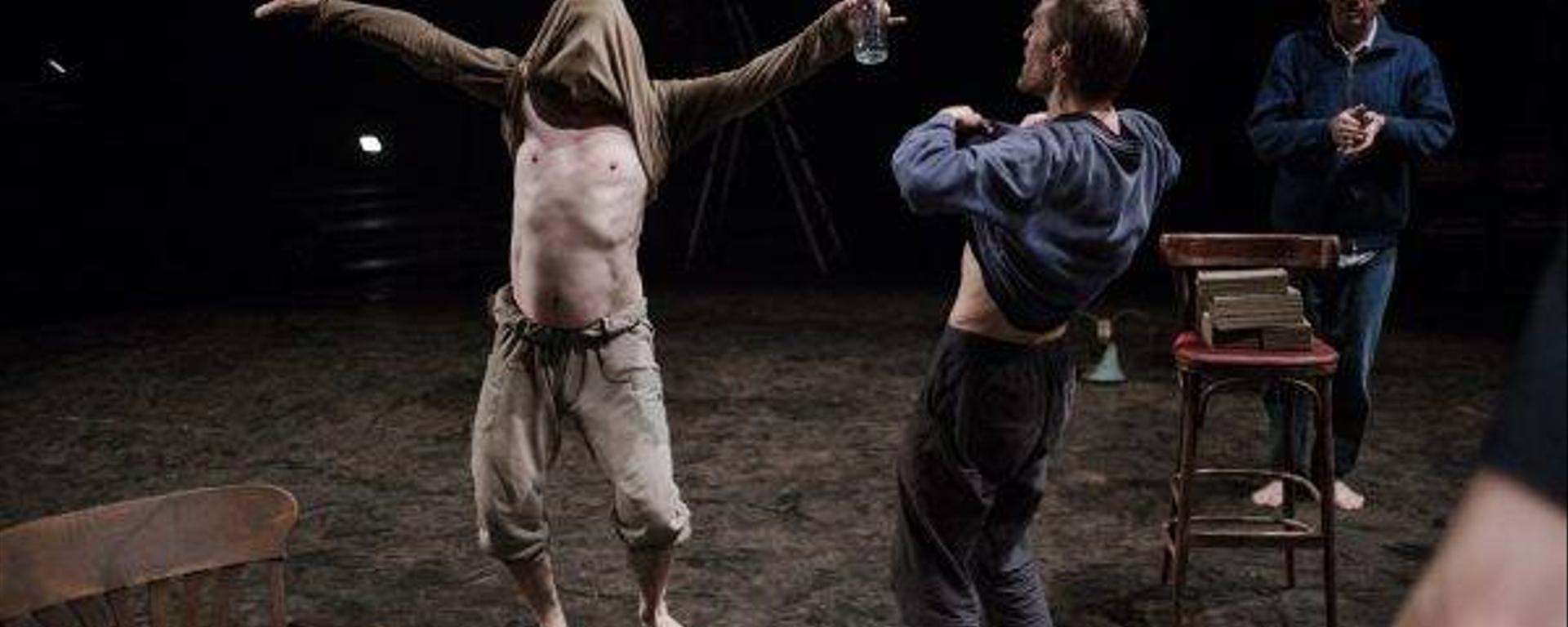 Alors que les spectateurs prennent place dans la salle et que les lumières sont encore allumées, le plateau apparaît déjà en mouvement. Une chorégraphie sauvage et anarchique, mêlant échauffements du corps et de la voix, est en train de se dérouler. Le spectacle a déjà commencé. Lorsque la lumière s’éteint enfin, la pièce ne démarre pas, elle se poursuit. Un piano ancien vient se joindre aux gémissements, au bruit des pas qui glissent sur la scène. Un piano commandé par Nathalie Morazin qui occupera une place centrale, du début à la fin, tant il fixera le rythme et la dynamique d’ensemble. Le metteur en scène décrit Hamlet comme une symphonie en trois mouvements, combinant récit et musique, mais il me semble que la symphonie se découpe avant tout en trois supports. Il y a d’abord la symphonie des voix — gémissements, cris, sifflements et récitation du texte. Des voix auxquelles viennent s’ajouter la symphonie du corps — le corps libre dans sa gestuelle, le corps qui se déplace sur l’ensemble du plateau, qui tombe, qui claque ou qui reste immobile. Enfin, on retrouve le piano et le chant lyrique maîtrisés à la perfection et notamment un morceau entêtant qui démarre et clôture la pièce. À cela, il faut ajouter tous les sons obsessionnels : la percussion sur le piano-tombeau, les métronomes insupportables dont on ne peut faire taire la symphonie répétitive et saccadée. Hamlet est une pièce bruyante et pathologique où les voix parcourent le corps et ne s’arrêtent que lorsque le spectre fait son apparition, et ce, de manière temporaire.