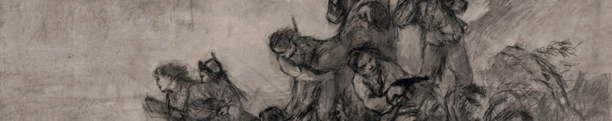 Exil, joug politique, normes esthétiques imposées… Les artistes chinois n’échappent pas non plus aux totalitarismes qu’a vu naître le XXe siècle, et qui se poursuivront très tard en Asie. Avec la proclamation de la République populaire de Chine en 1949, l’emphase caractérise la nouvelle peinture au service exclusif du récit idéologique, et l’encre est rejetée pour son manque d’ampleur épique comme pour son lien avec un passé déchu. Des quelques tableaux socialistes réalistes présentés dans l’exposition et fraichement acquis par Cernuschi, on distingue tout de suite la rigueur de l’organisation picturale, qui laisse peu de place à l’originalité stylistique. Pour rendre aux personnages officiels la représentation la plus flatteuse et terne — au premier rang desquels trône Mao Zedong —, le dessin préparatoire au fusain est désigné comme un élément essentiel, soumis à la censure avant l’exécution finale, puis souvent amendé, caviardé selon les évolutions hiérarchiques et les disgrâces. Dans ce contexte, la peinture à l’huile fut le moyen le plus simple d’en arriver au résultat voulu, résultat idéologique. Mais cette tentative d’annulation d’une tradition picturale, tenue par l’encre et son trait spirituel, ne devait avoir d’effet qu’à l’intérieur des frontières surveillées du régime.