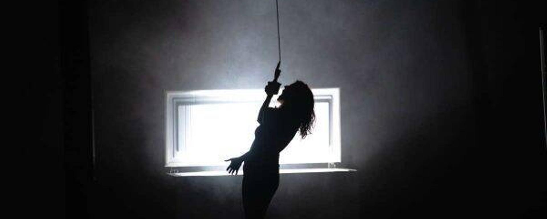 L’œuvre est très harmonieuse dans une atmosphère électro grunge avec de beaux visuels. Le lourd drap couleur métallique suspendu en fond de scène, dans lequel Sarah Espour vient s’enrouler, brise la droiture du décor et donne un effet de vertige comme si un mur porteur allait s’effondrer sur l’actrice. Elle est entourée de reflets bleutés qui se réverbèrent autour, comme une plongée dans les abîmes. La scénographie est intelligente, tous les espaces sont portés par la lumière qui délimite et soutient les tableaux et tout particulièrement ceux musicaux.