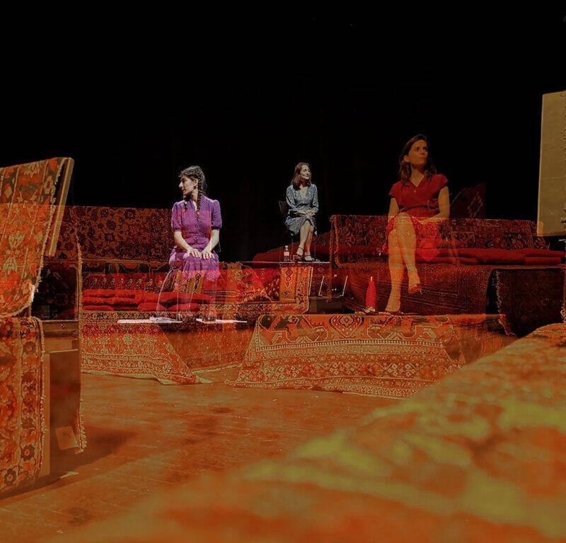 Comme nous savons qu’il y a au plateau les femmes qui ont vécues les histoires qui nous seront racontées, il n’est pas étonnant que cette entrée en matière se fasse avec beaucoup de soin. Nous allons recevoir une parole intime. Une parole qui a été offerte à Gurshad Shaheman par sa mère et ses tantes. Le metteur en scène a enregistré, retranscrit et écrit sur ces témoignages. Toujours est-il que nous bénéficions des fruits de la confiance, de l’amour, du moment qui a conduit ces femmes à se livrer. Nous sommes invité.es à les entendre, nous sommes invité.es dans ce monde de paroles mais pour bien le recevoir, ce doit être un moment intime pour nous aussi.