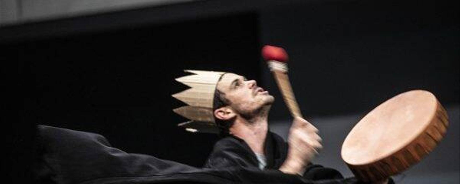 Comme pour conjurer le sort d’une scène trop vide, Lionel Lingelser nous accueille au Théâtre Public de Montreuil à coups de tambour assourdissants. Cette partie, il la jouera seul, laissant – une fois n’est pas coutume – ses acolytes du Munstrum Théâtre en coulisses. Dans un décor d’une extrême nudité, c’est non sans malice qu’il rompt temporairement avec l’esthétique léchée de la compagnie dont on peut voir le superbe aboutissement en ce moment au TPM avec Zipher Z.