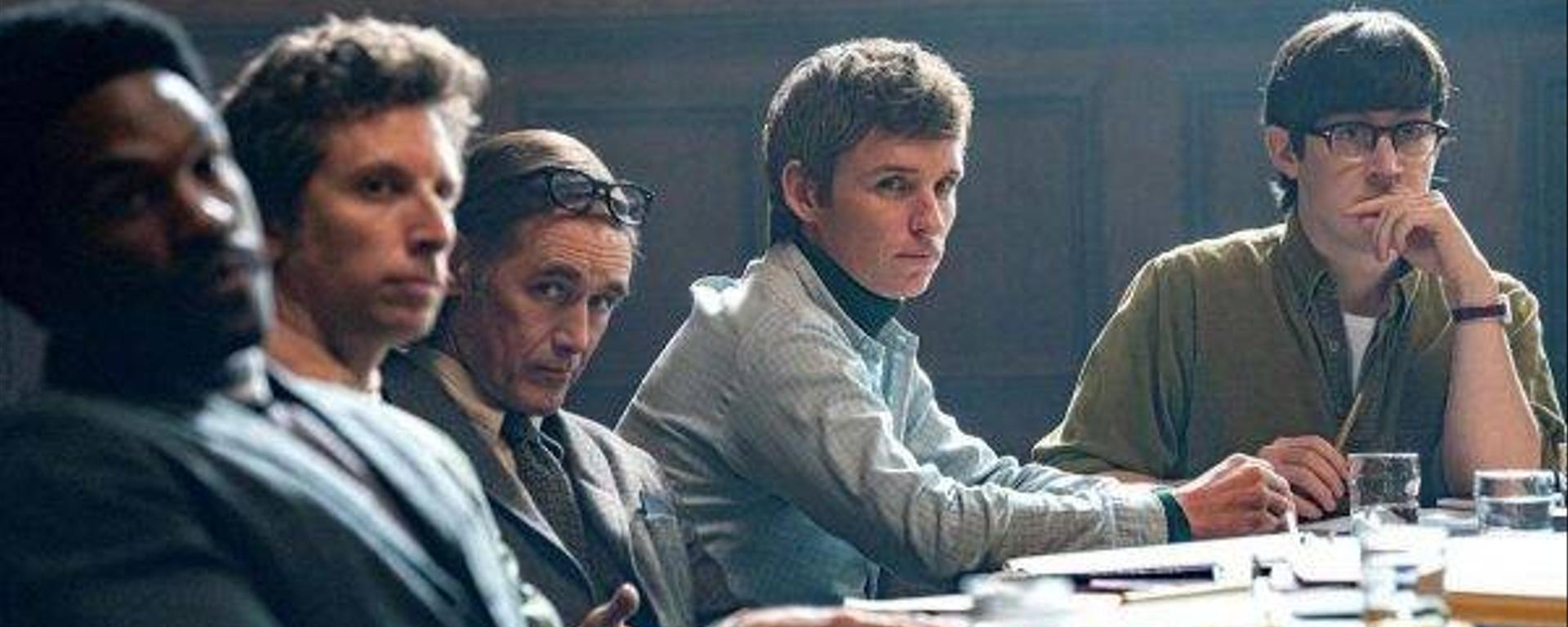 Sorkin à propos de la violence, est assez explicite : si le sang doit couler, qu’il coule dans toutes les rues de la ville. Voilà sa théorie politique. Elle demeurerait simpliste si la question subséquente « c’est bien beau mais… lequel, de sang ? », n’ouvrait pas le film sur des perspectives infinies. La réponse de Tom Hayden (Eddie Redmayne) : « je voulais dire, si NOTRE sang doit couler », suggère que Sorkin avait en tête moins l’appel au lynchage que la triste fatalité infernale du sang versé, dont la Bible, on le sait, dit qu’il appelle toujours sa vengeance.