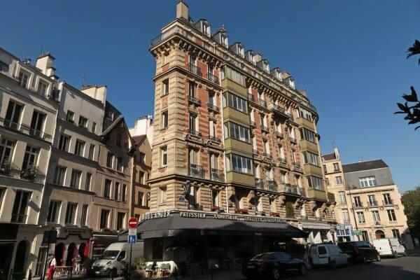 l’immeuble rose au n°5 de la rue Lagrange dans le cinquième arrondissement de Paris.