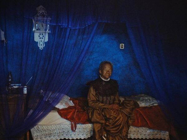 À nouveau, le personnage de Mantoa se pose comme un rempart, intouchable dans son corps si frêle. Elle résiste aux orages, aux pluies torrentielles et au feu. Elle écoute à la radio le nom des morts qui défilent. Elle semble les envier, et attend, allongée dans son plastron funéraire, la mort qui la guette, l’espionne, mais qui jamais n’arrive. Elle la supplie de venir l’emporter, pour pouvoir profiter du repos qu’elle mérite tant, allant jusqu’à suer pour creuser sa propre tombe et profaner son âme. Tout s’efface autour d’elle, mais malgré ses implorations, on lui refuse le trépas. Vient alors le temps de choisir, de confronter la faucheuse. Pareil à un Titan, elle a pour seules armes son corps nu et ses muscles bandés. La légende de Mantoa, la reine sans âge, s’inscrit dans les mémoires. Elle se libère de ses couches de vêtements sombres, strates successives d’un nombre de deuils trop important. L’esprit de Mantoa la quitte, et vient rejoindre l’enfant qui l’observe, témoin de sa résurrection. On devine que ce regard glaçant est pareil à celui de la vieille femme lorsqu’elle n’avait que neuf ans. Le regard de celle qui a tout vu et qui pourra tout vaincre.